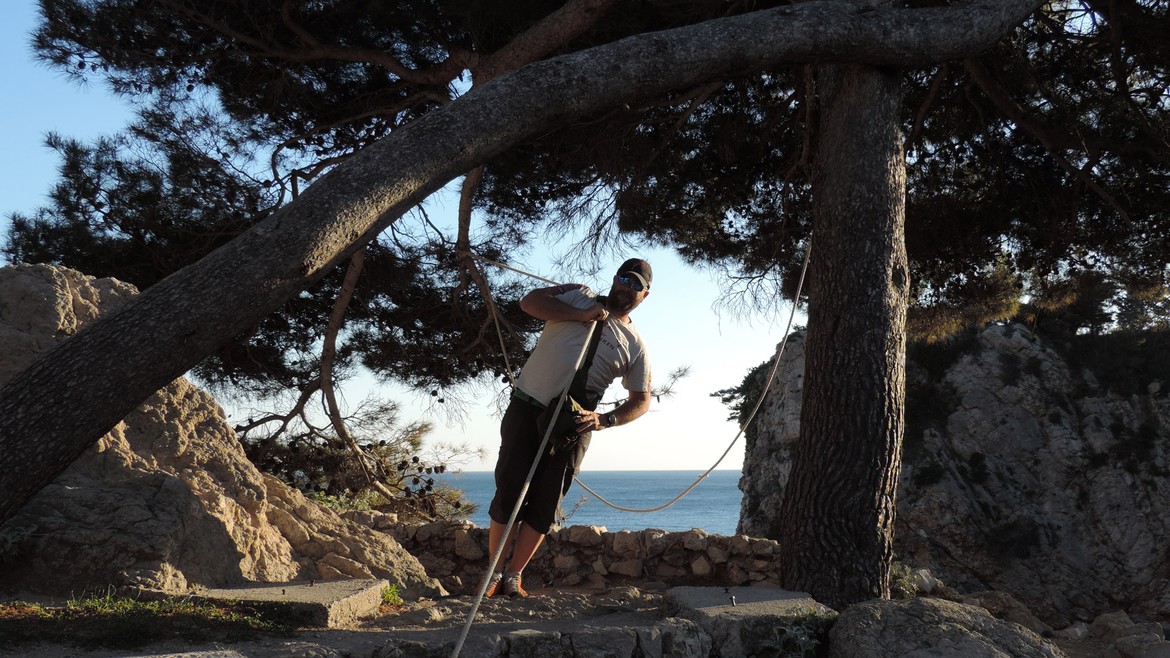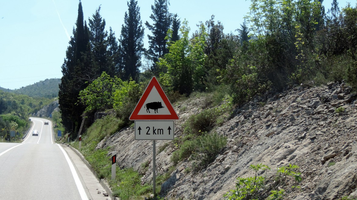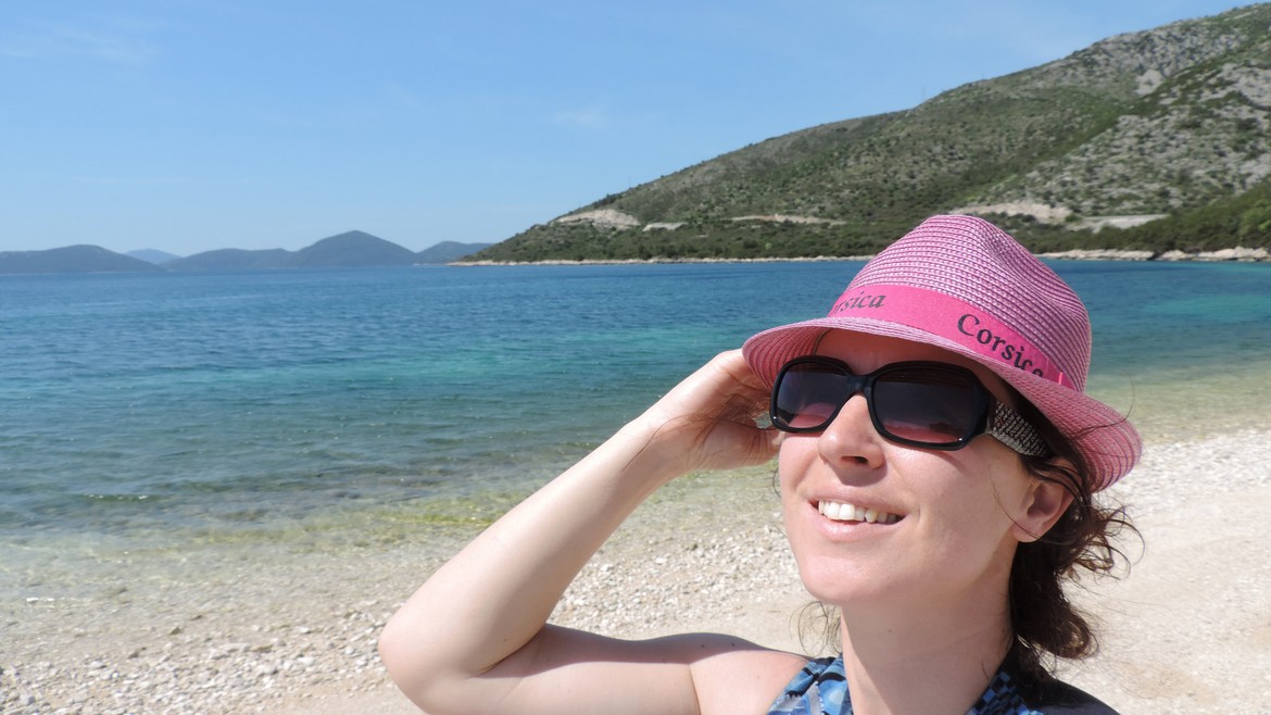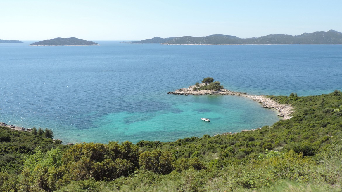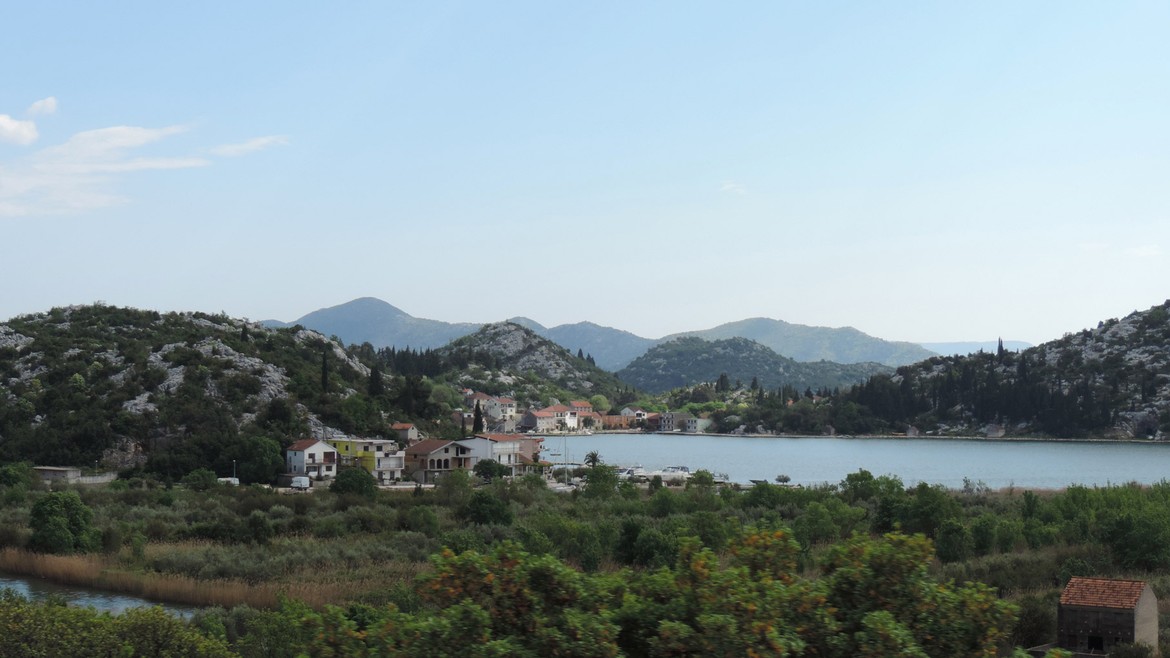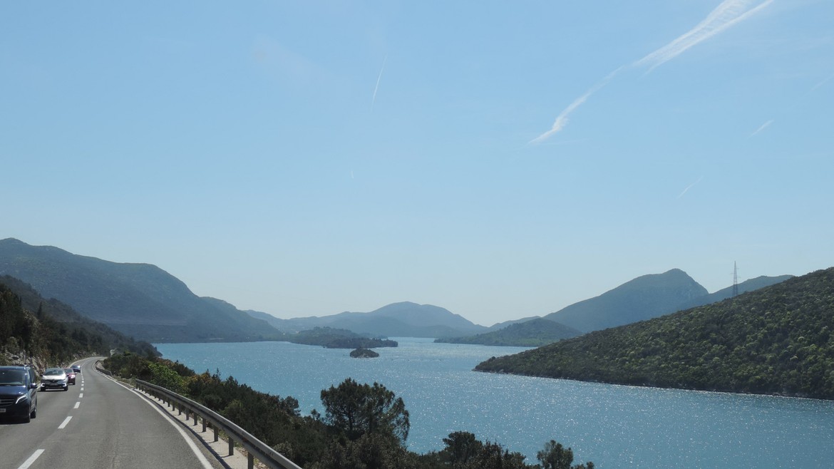 Retour en terre croate où nous longeons la côte vers le sud. Elle nous rappelle parfois la Corse, quand les eaux turquoises des petites criques appellent à la baignade, parfois la Californie avec sa route côtière, lorsque les Alpes dinariques aux falaises vertigineuses plongent dans l’Adriatique. On est heureux de retrouver la mer. Il fait beau et les températures sont supérieures à 20°C : on peut sortir les shorts et les t-shirts et ça fait du bien ! Impatients de se retrouver « les pieds dans l’eau », et désireux d’économiser les coûts d’un camping, Mike écume les routes improbables du bord de mer à la recherche du bout de plage qui nous permettra de poser Antares au plus près de l’eau.