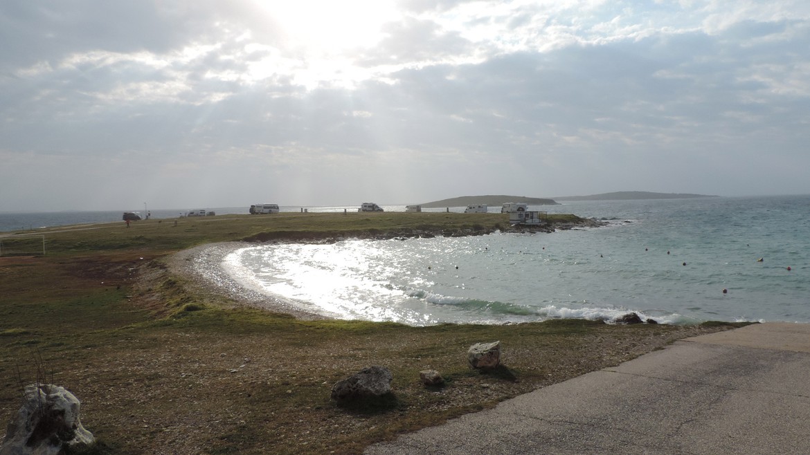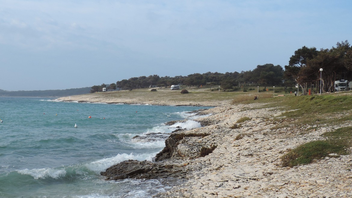 Ici le camping sauvage n'est pas autorisé. Nous optons donc pour un premier camping au Aminess Sirena Campsite près de Novigrad. Il fait beau, les températures avoisinent les 15°C-16°C, ce qui nous permet gentiment de ranger nos doudounes au "placard". Il y a peu de monde en cette saison et nous profitons du calme et du dépaysement: mer, pins, mouettes, etc... un bon air de vacances !
