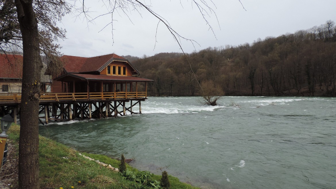 C’est d’ailleurs contemplatifs de cette balade champêtre et concentrés sur les routes quelque peu cabossées, que nous perdons le cap. Un panneau nous indique « Zagreb » ?!? On se rend compte qu’on est à la frontière croate et qu’on tourne en rond depuis une centaine de kilomètres, soit environ depuis 2h30. Pas le choix, il nous faut rebrousser chemin et longer Una, une des principales rivières de Bosnie. Mer d’huile par endroit, cascades et rapides parfois, splendide, elle nous accompagne sur plusieurs dizaines de kilomètres. On poursuit notre route jusqu’à Banja Luka où une station-service on nous offre l’hospitalité pour la nuit.