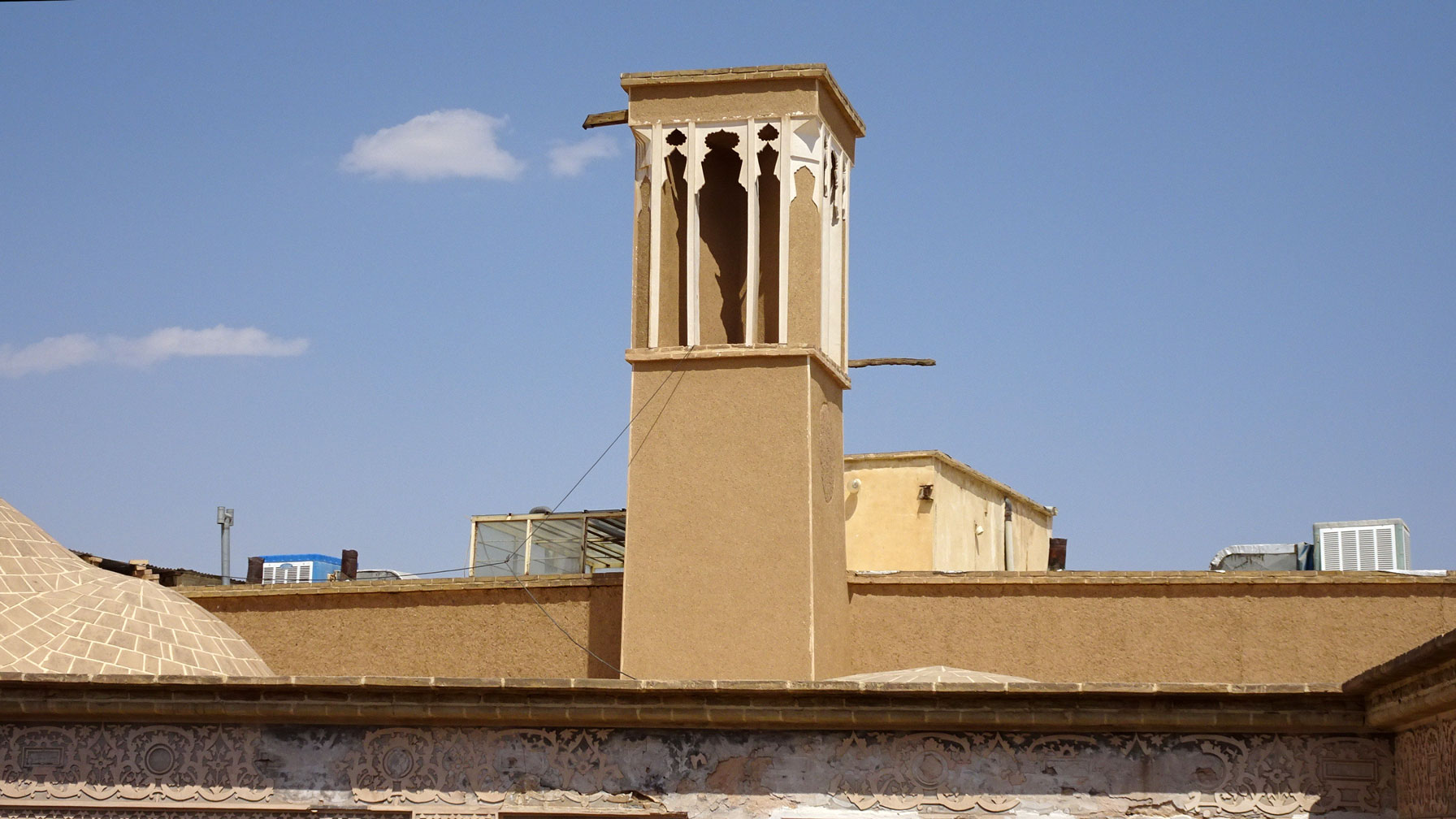 Nous y découvrons les premiers exemples de tour à vent ou bâdgir : un système ingénieux utilisé pour créer une ventilation naturelle et rafraîchissante des locaux à vivre.