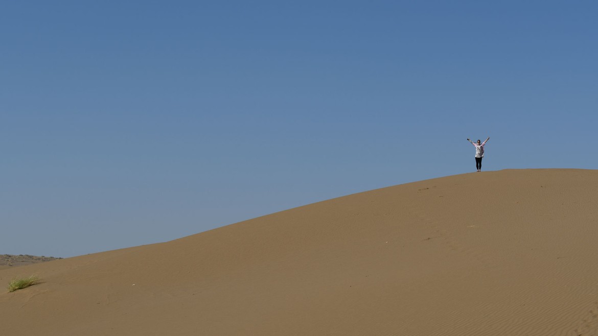 Enfin, le guide nous amène jusqu’aux dunes de sable. Là il n’y a plus de doute, nous sommes dans le désert. Et il s’étend à perte de vue.
