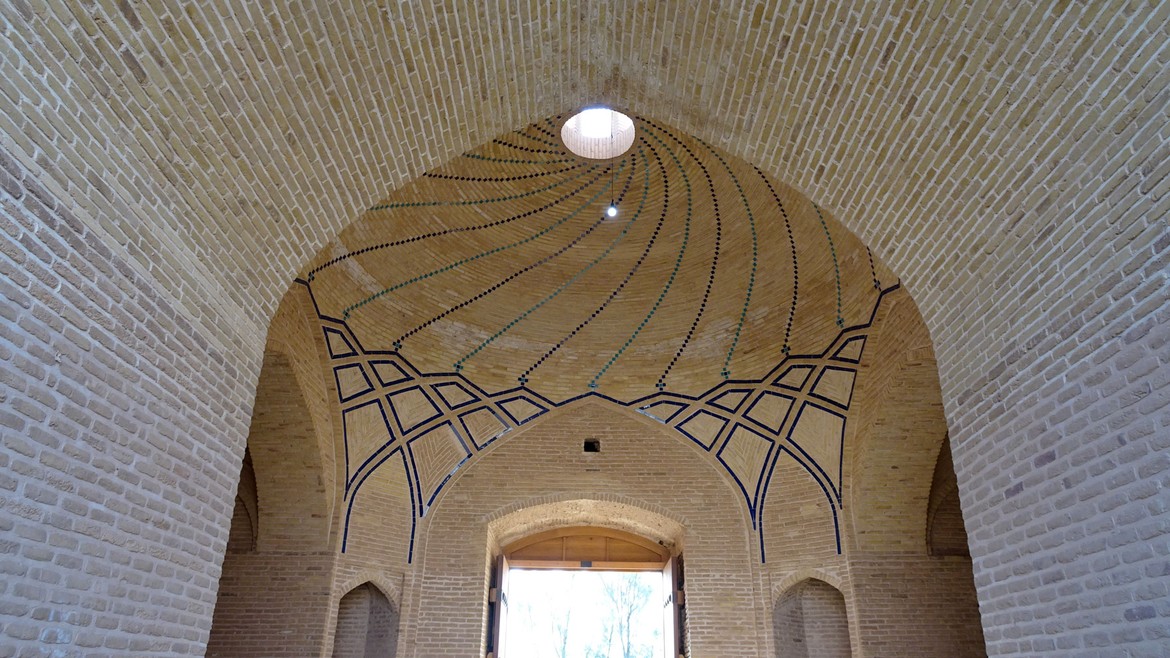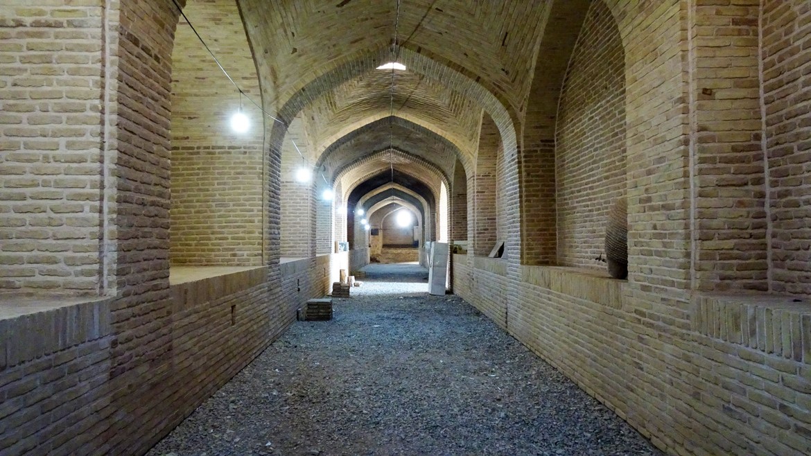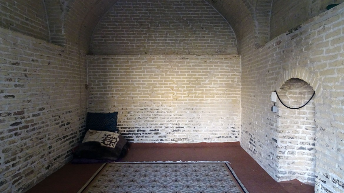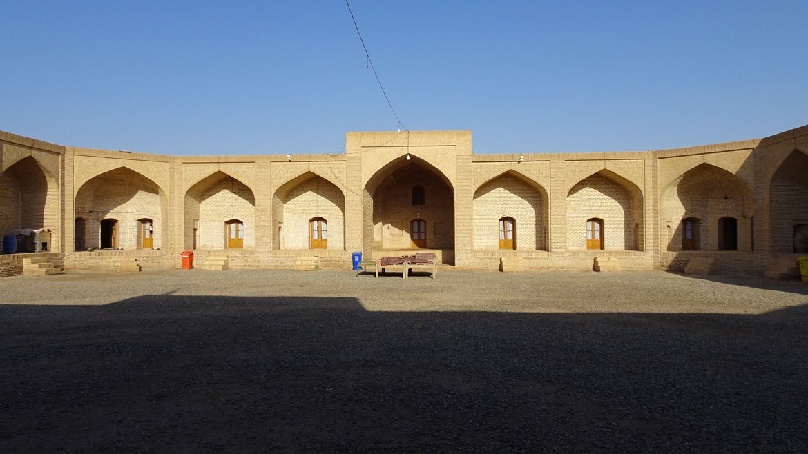 Le lendemain, nous nous levons avec le soleil... ou presque... merci à Sébastien pour les photos !! Nous visitons d’abord le caravansérail (pour la définition, voir Tabriz ). L’entrée est de 100'000 rials / personne. Sa rénovation touche aujourd’hui à sa fin et il est de nos jours essentiellement utilisé comme hôtel pour les touristes qui veulent se frotter à une expérience dans le désert. Ne vous attendez pas à une chambre 4*. Ici on dort à même le sol !