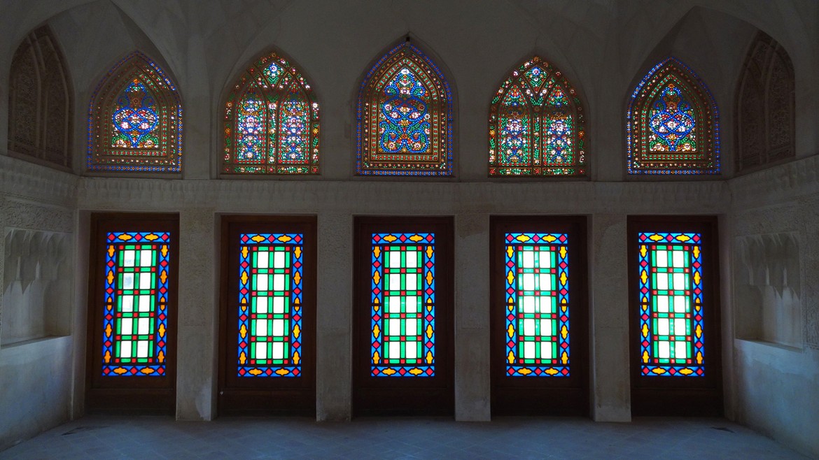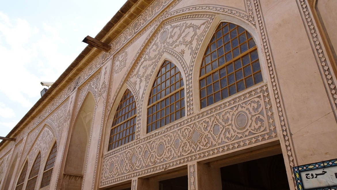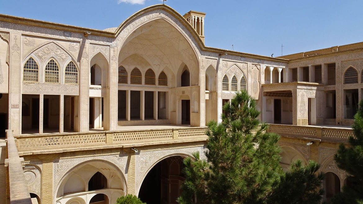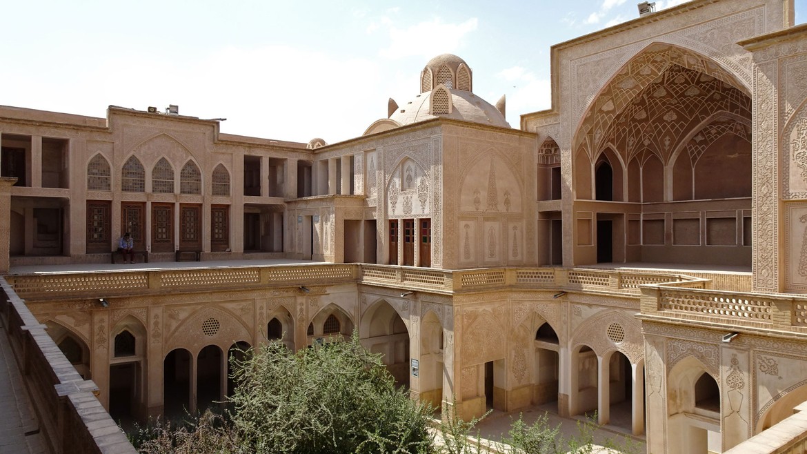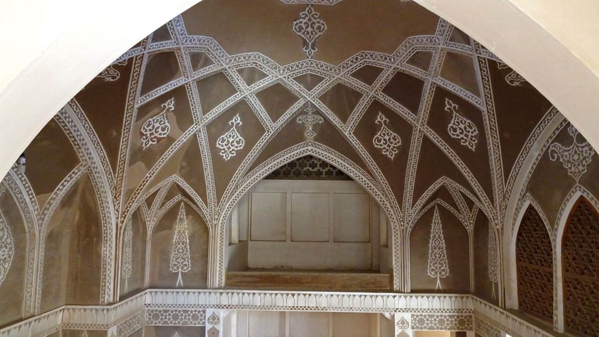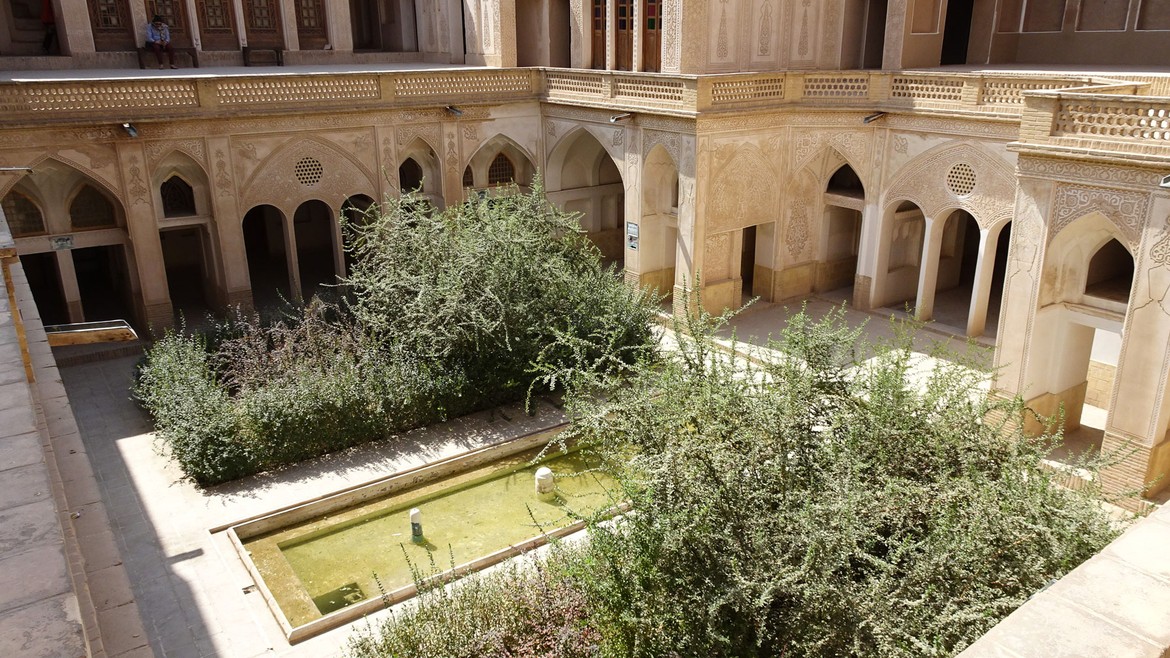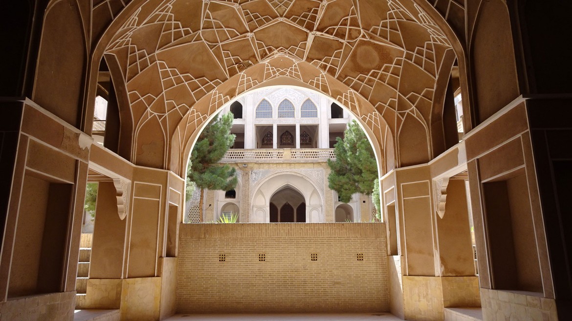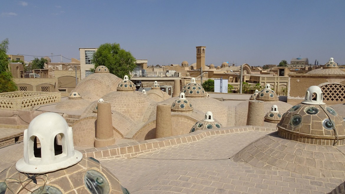 La ville est la première des grandes oasis que l’on trouve sur la route de Téhéran à Ispahan. On y trouve de belles résidences traditionnelles de marchands, construites autour de cours intérieures. Nous en visitons deux : la Maison Taj...