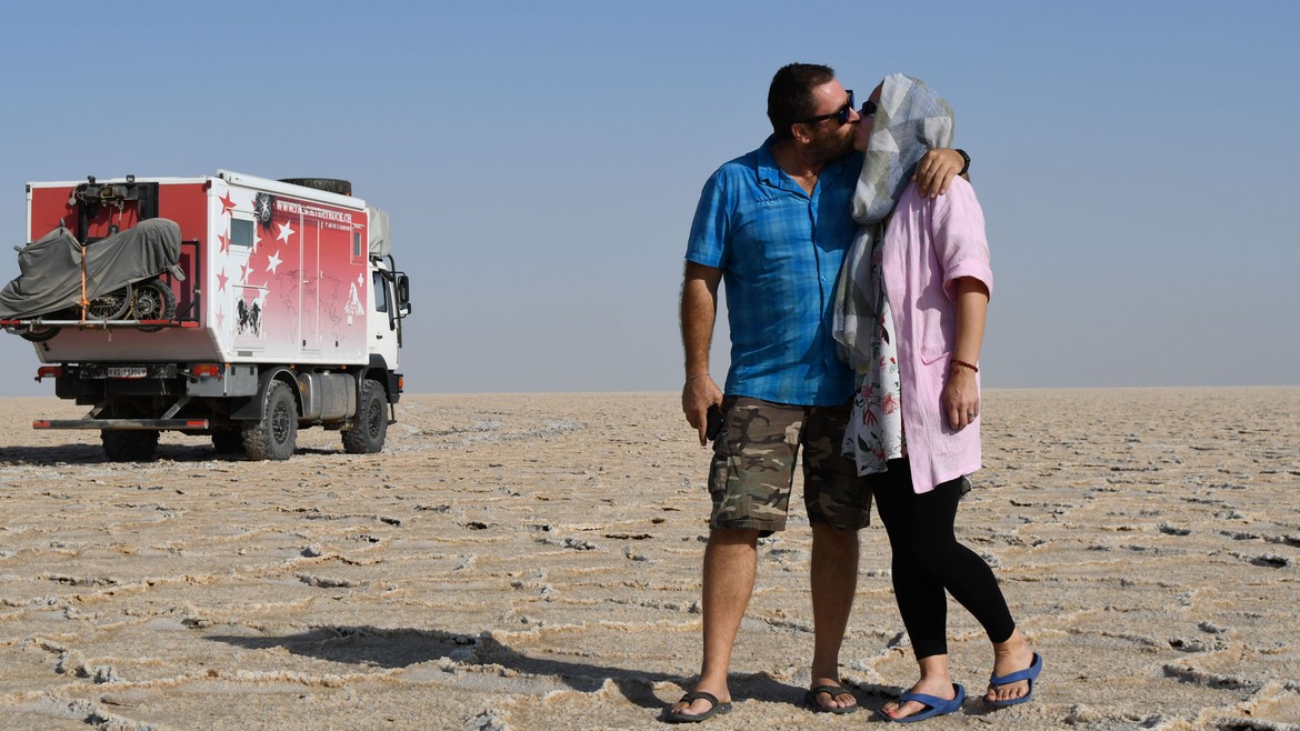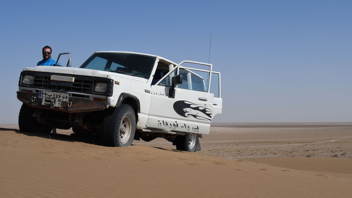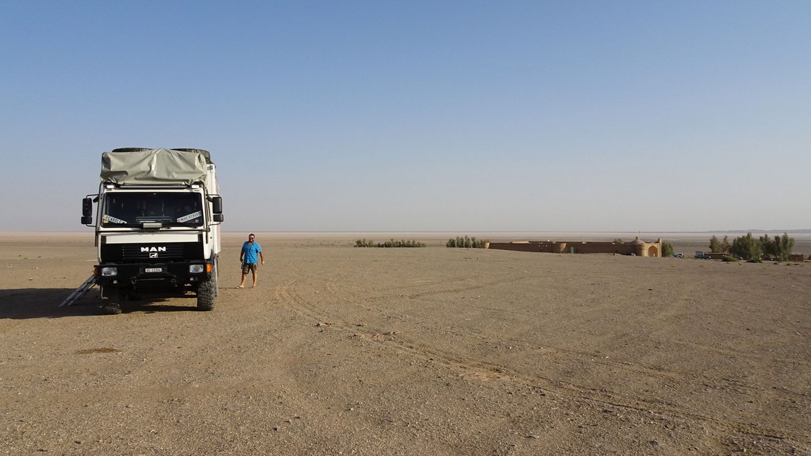 Sur la route vers le sud et à peine sortie de Téhéran, la température monte en flèche. Le paysage devient aride. Histoire de se mettre directement dans le bain, nous passerons la prochaine nuit dans le désert de Maranjab, prémisses d’un désert beaucoup plus grand, celui de Dasht-e Kavir qui fait 800 kilomètres de long pour 300 kilomètres de large.