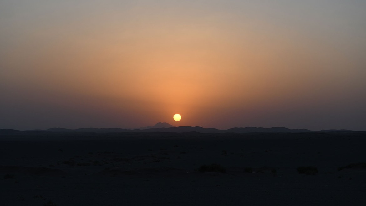 Nous faisons la route dans le soleil couchant et arrivons au caravansérail dans la nuit, trop tard malheureusement pour voir les dromadaires sauvages s’abreuver après une journée dans le désert.