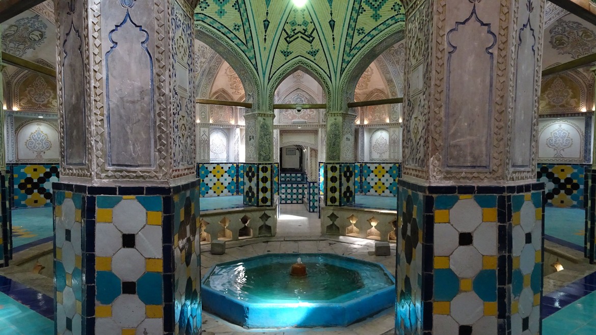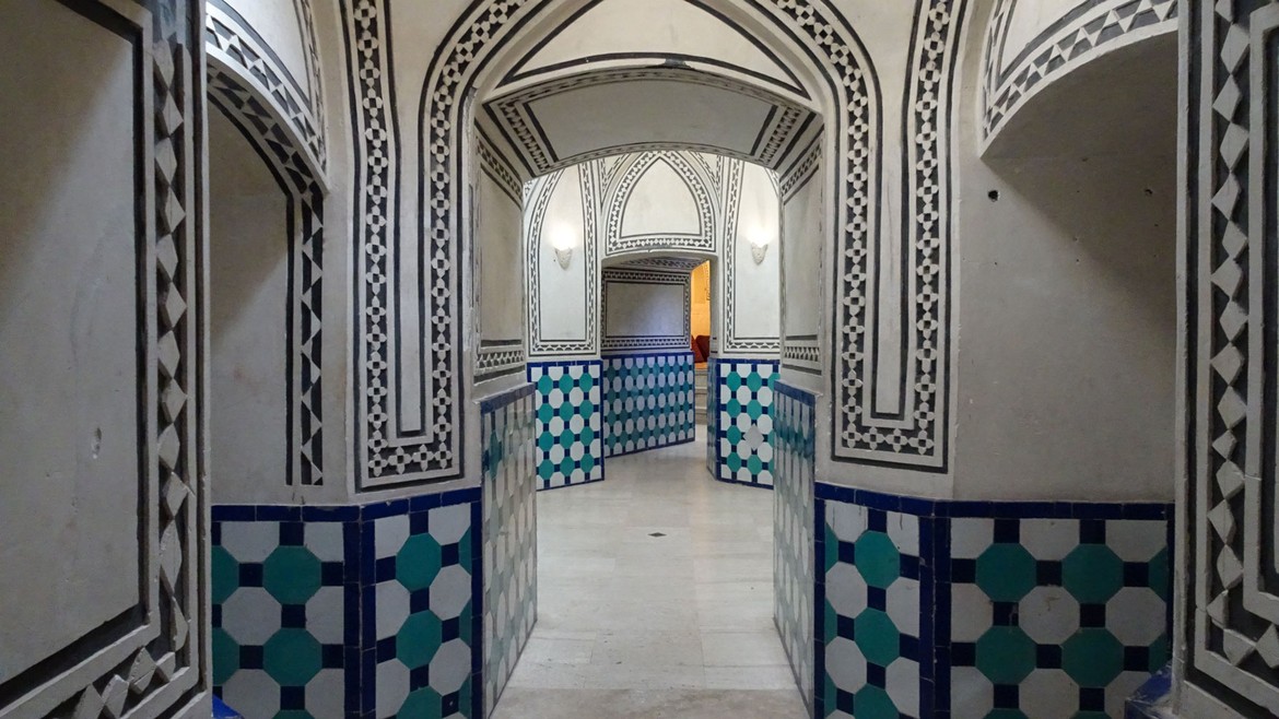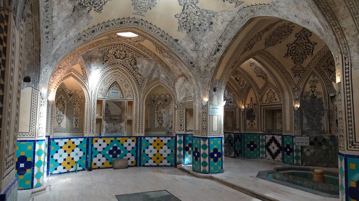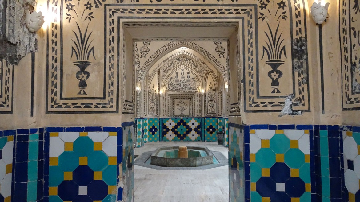 Nous nous rendons ensuite au Hammam d’Amir Ahmad, une maison de bains aujourd’hui ouverte au public comme musée. L’intérieur est richement décoré en carreaux de céramiques de couleur turquoise ou dorée, ainsi que de stucs, de fresques et de miroirs. Il y a aussi la possibilité de découvrir les toits du bain et d'admirer ses coupoles.