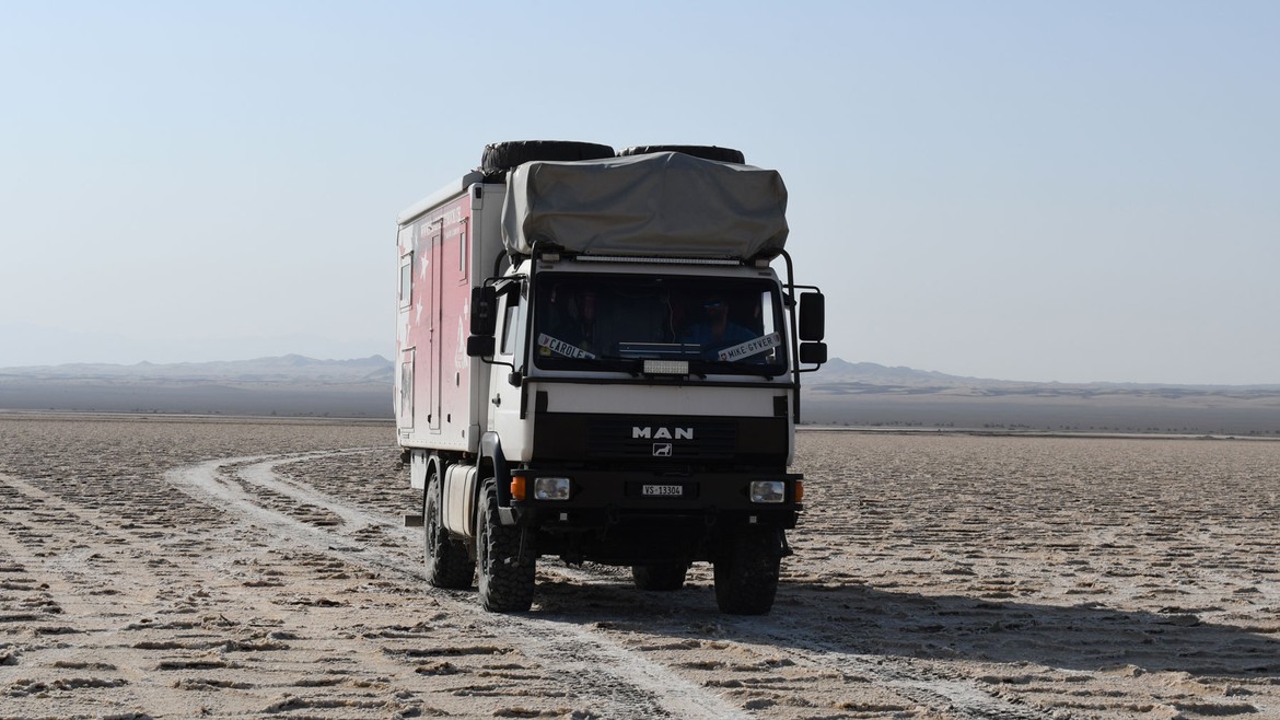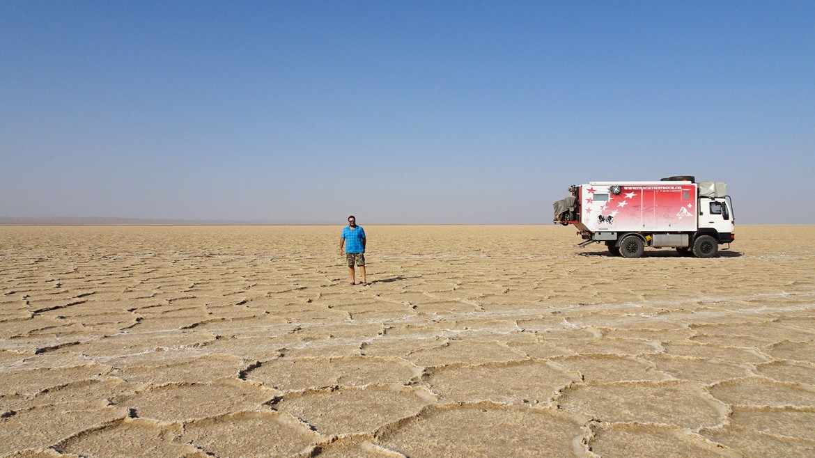 Puis nous nous dirigeons vers Namak Lake, un lac salé qui s’étend sur 1'800 km2. C’est encore plus grandiose que Tuz Gölü en Turquie (voir Tuz Gölü ).