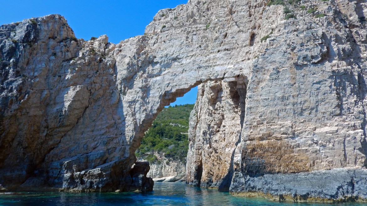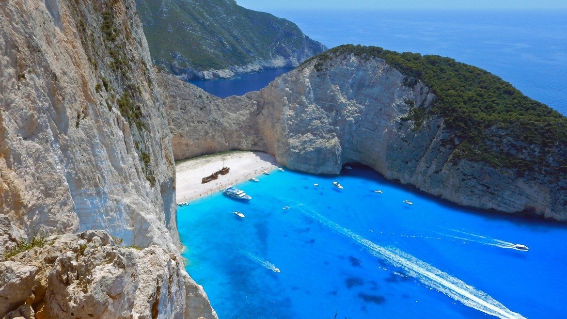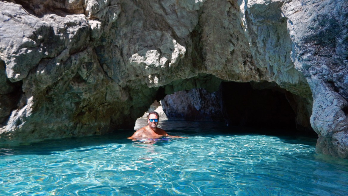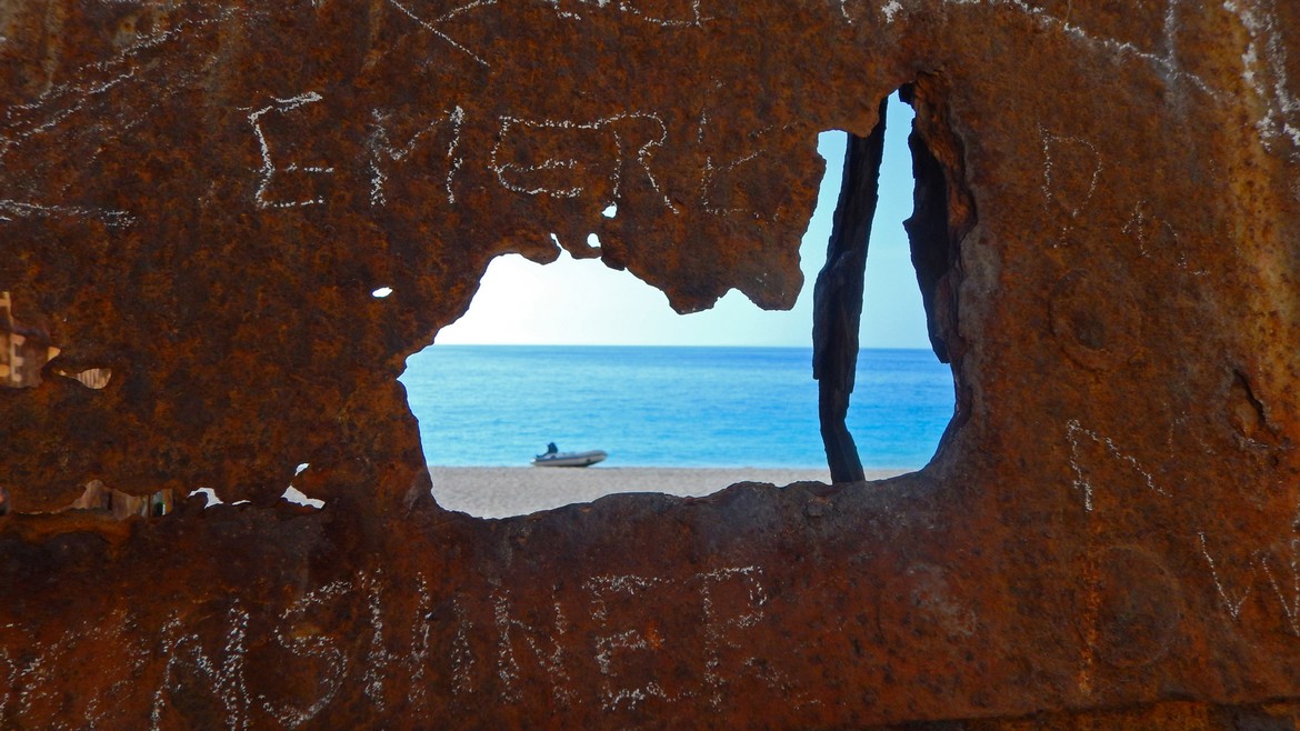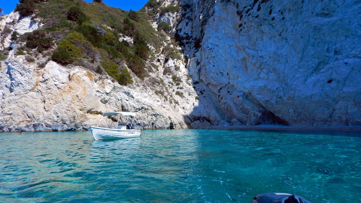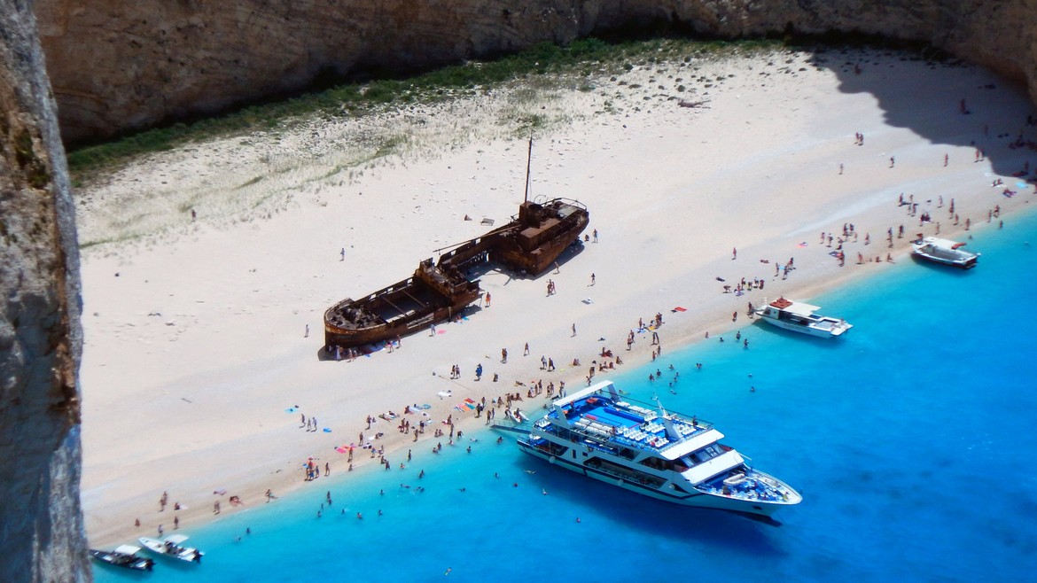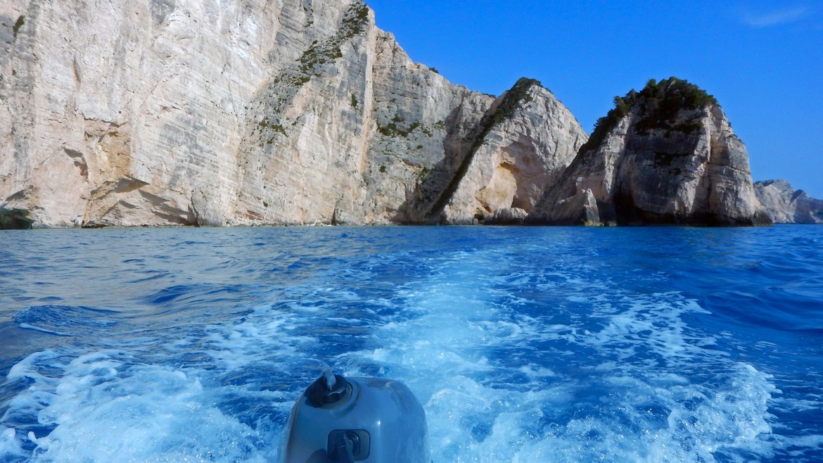 Mike découvre enfin le Panagiotis, ce navire de contrebande de cigarettes échoué sur cette crique suite à une tempête. La plage est magnifique avec son sable fin, ses falaises et son épave. On la découvre d’abord depuis le sommet des falaises, au milieu des cars de touristes asiatiques puis on s’y rend avec notre zodiac, en fin de journée, en longeant la côte et ses grottes depuis Port Vromi.
