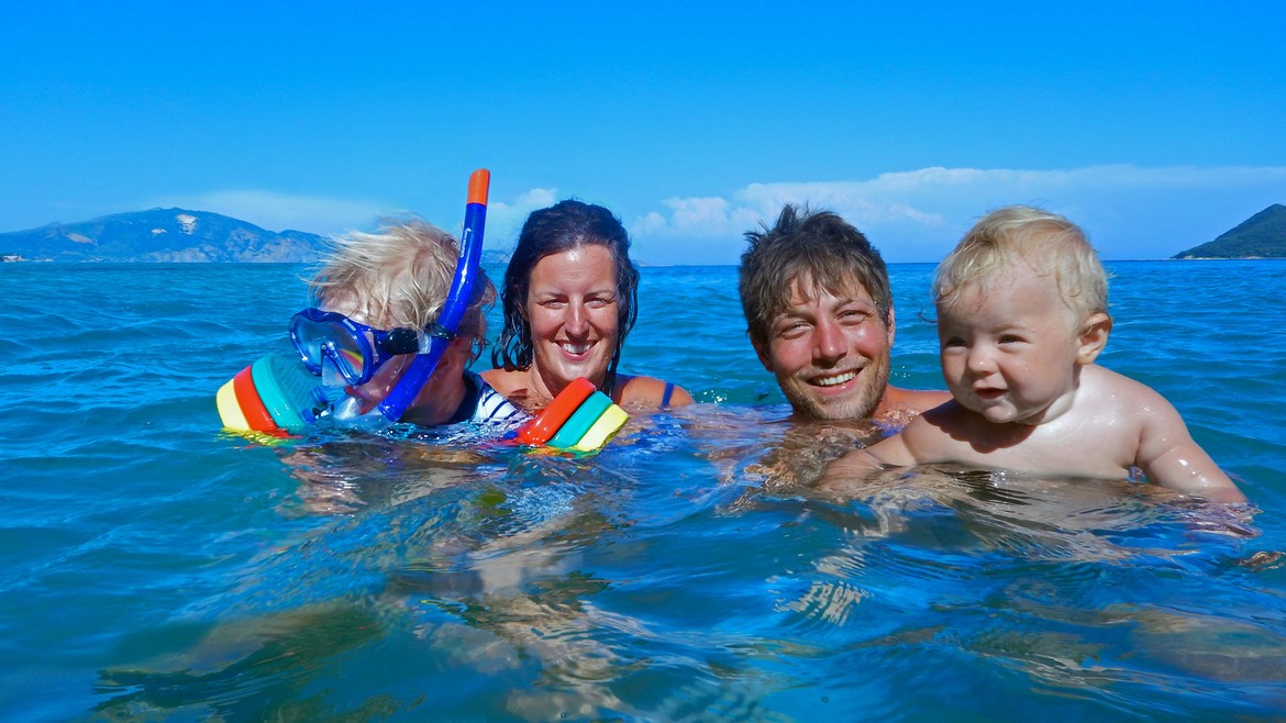 Premier arrêt à Tartaruga où nos amis sont installés depuis plusieurs jours au milieu des oliviers dans ce charmant camping en terrasse au bord de la mer. Zodiac, masques et tubas, canne à pêche, hamac, moto, cuisinière à gaz extérieure, tables et chaises, Antares prend de vrais airs de vacances !