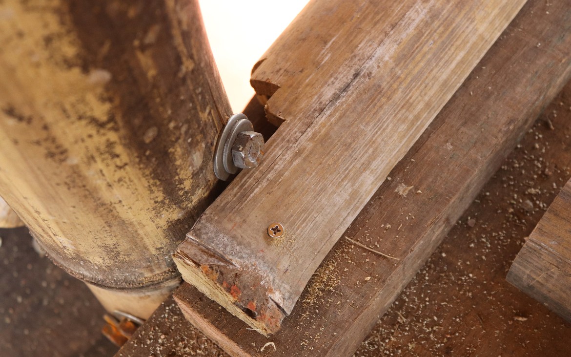 De notre côté, nous réfléchissons aux travaux qui pourront être réalisés en son absence et entamons la fermeture verticale entre les deux planchers d'étage.