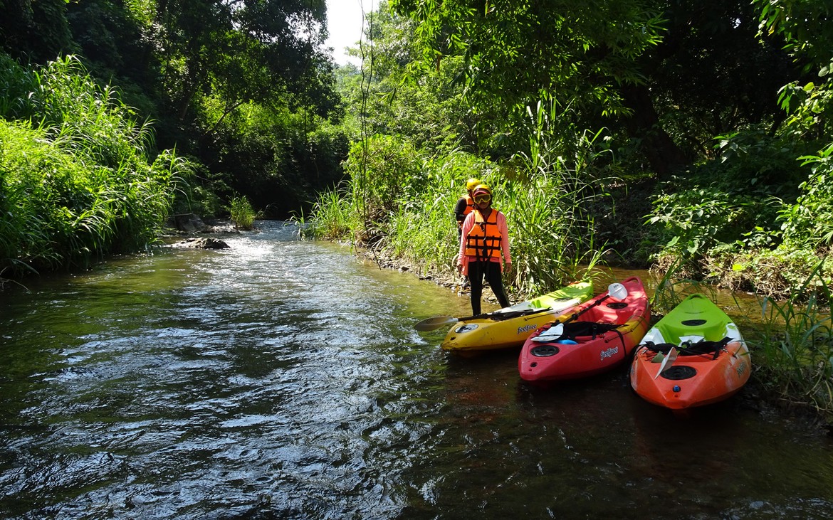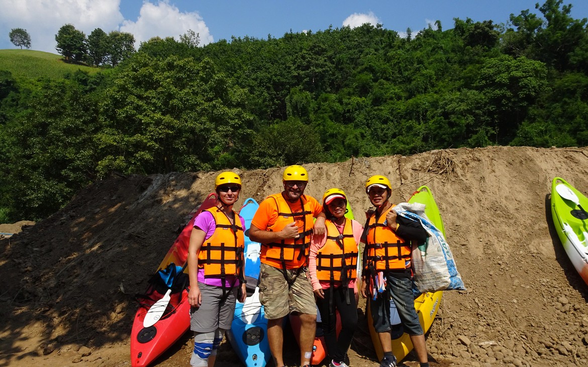 Il est dimanche, et John nous invite à kayaker dans le lit du Mae Ngao.