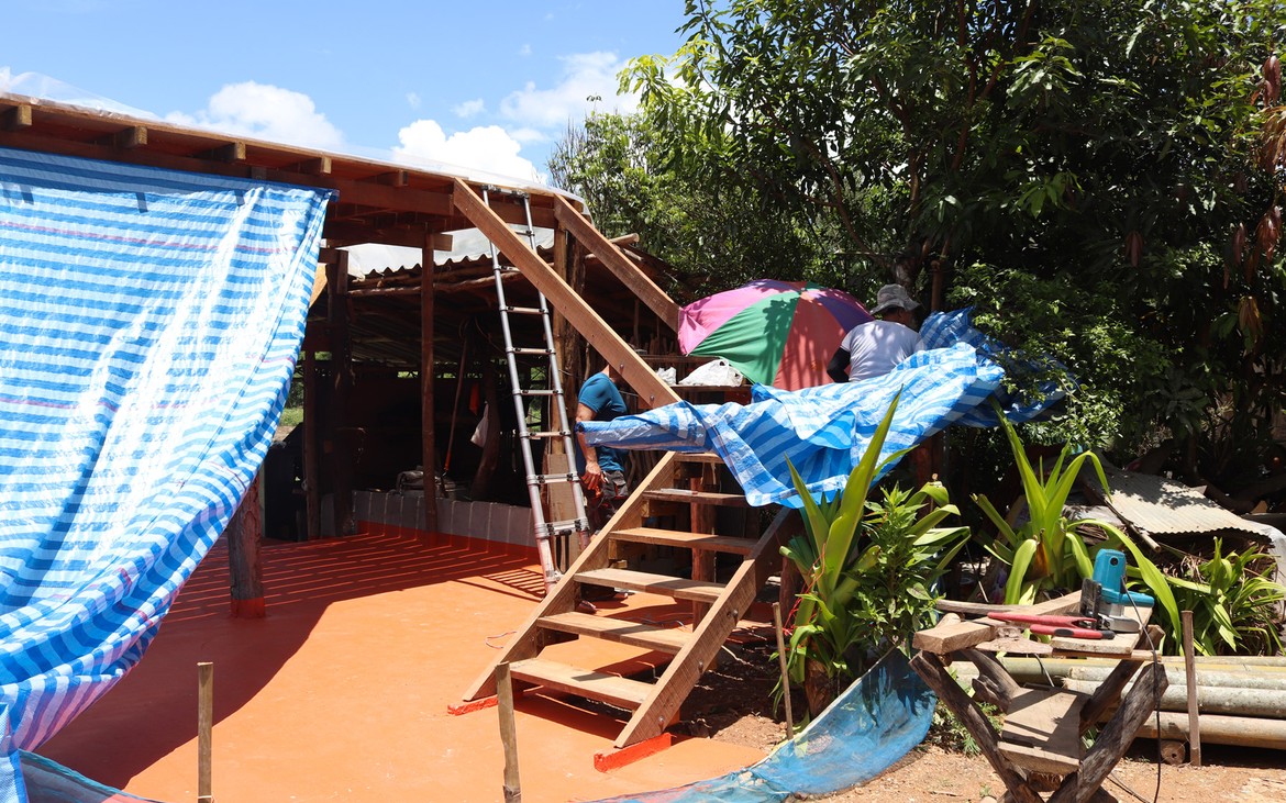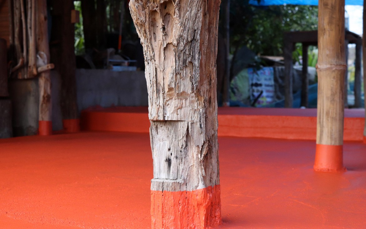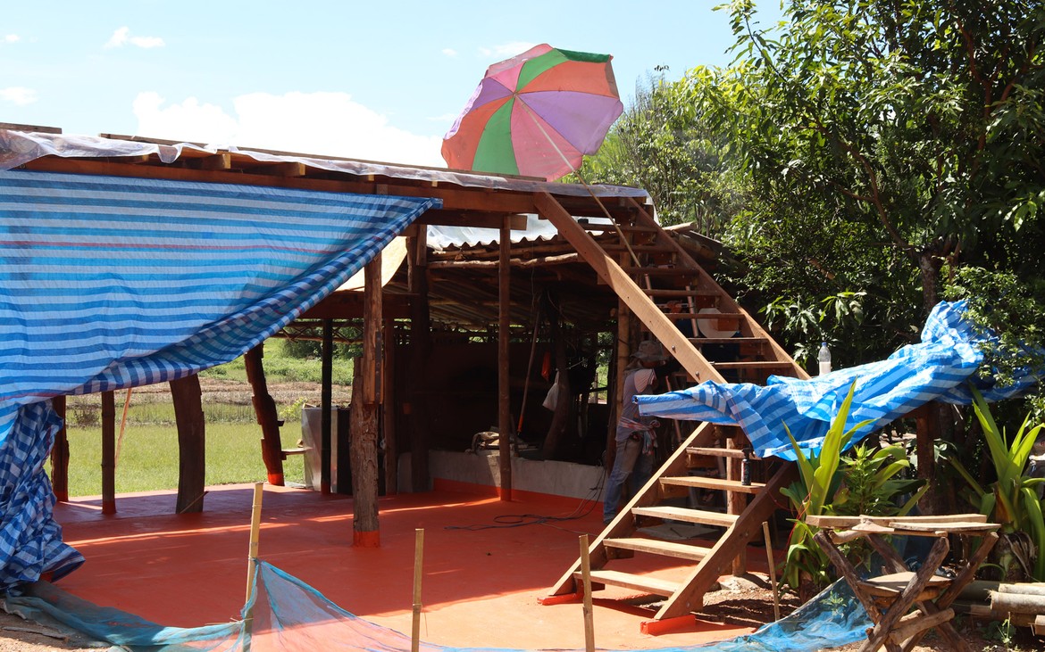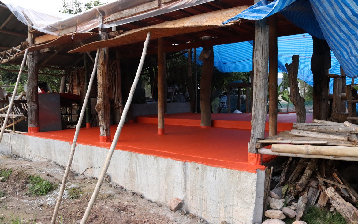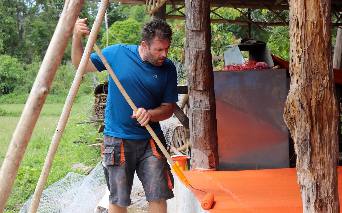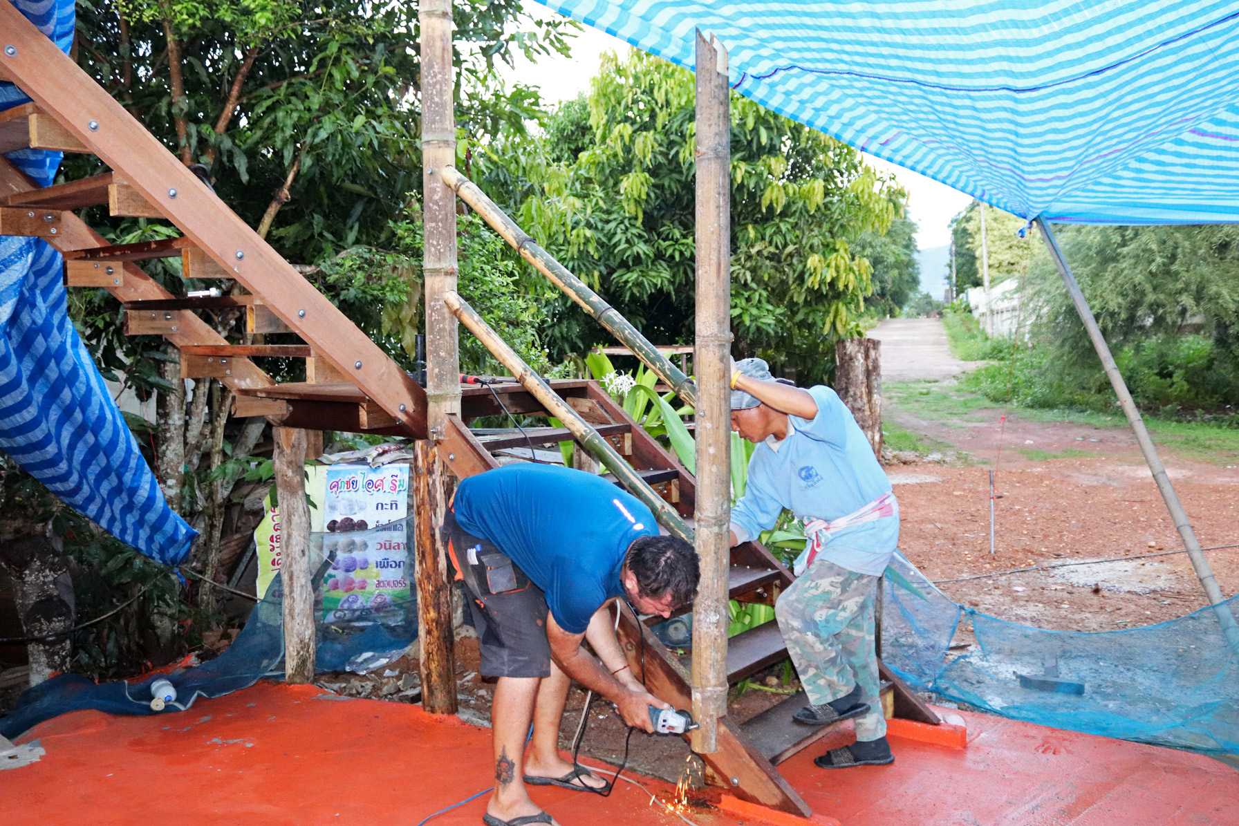 La météo reste maussade à notre retour à Ban Thung Sai. Nous ne pouvons guère faire davantage que repositionner la première volée d'escaliers et terminer les peintures de plinthes.