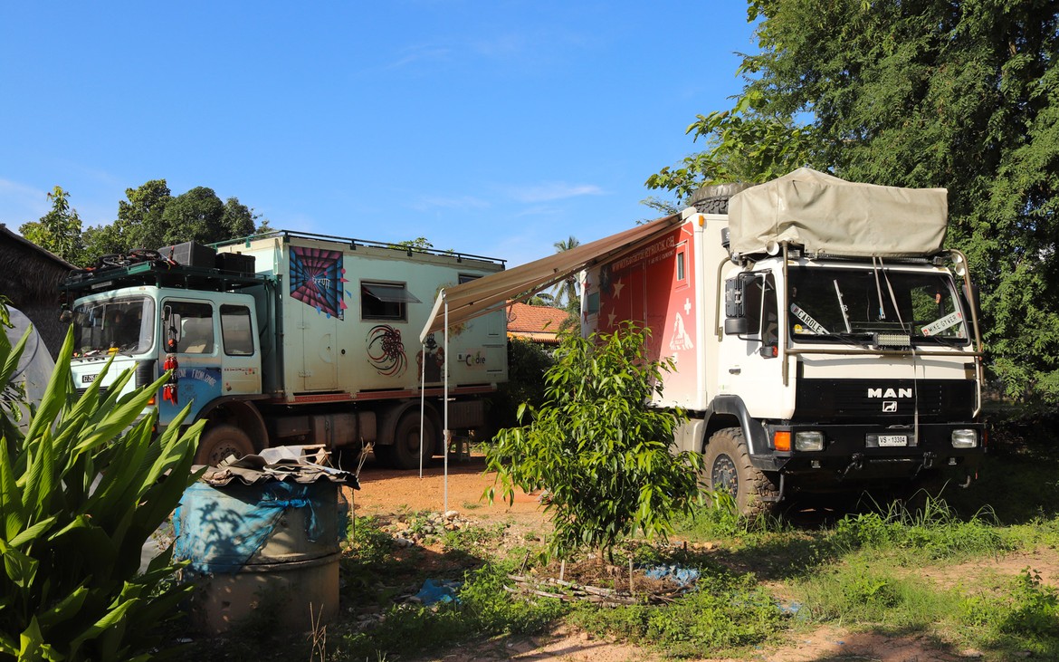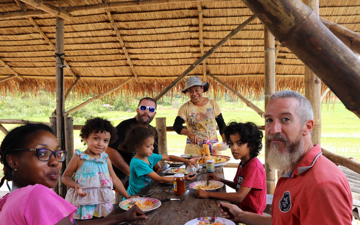 Depuis hier soir, un nouveau camion occupe le terrain devant le Fall In Love Sala Restaurant. Une famille française s'est jointe à nous pour partager quelques jours chez Kung et nous prêter main forte ! Bienvenue à Mariam, Loic et leurs trois enfants !