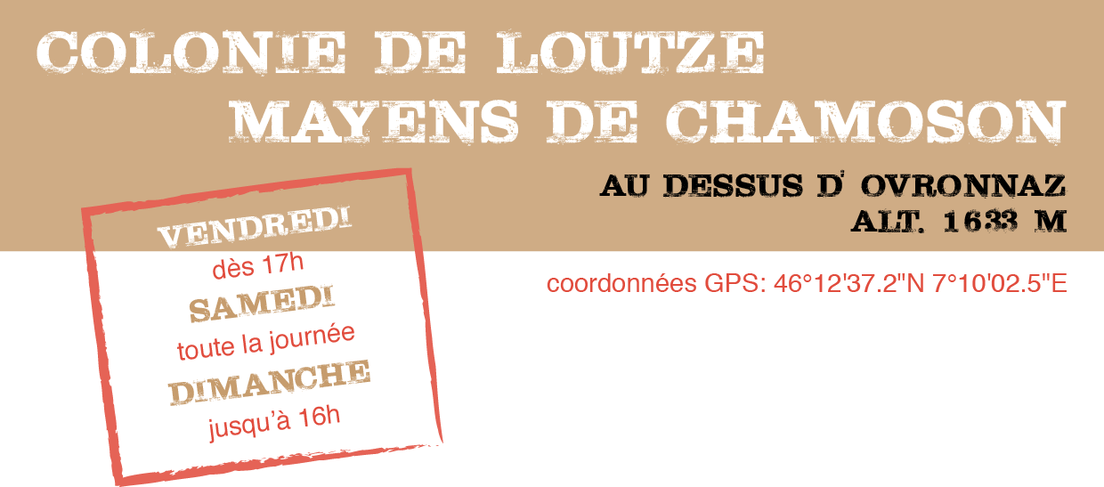 - Possibilité de dormir sur place: prix demandé par la colonie CHF 15.-/pers. (sacs de couchage à prendre)