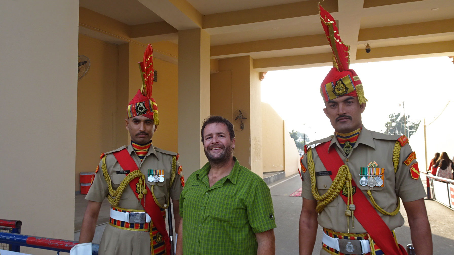 Et voilà, nous sommes sur sol indien. Les garde-frontières indiens sont tout aussi colossaux que leurs congénères pakistanais !