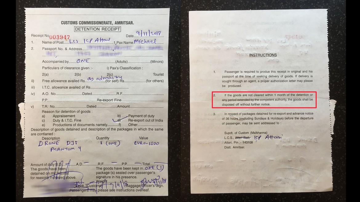 Au dos de ce document, sous le point 2, une petite mention donne un mois au propriétaire de l’appareil pour le récupérer avant qu’il ne soit propriété de l’Etat indien… Cette partie-là, c’est au signataire de ne pas la rater, car aucun des douaniers ne vous en informera. Ensuite, il n’y a qu’un moyen de reprendre possession de votre bien et c’est à la douane sortante… pour le Pakistan ! C’est très pratique, surtout lorsque vous n’avez pas pour projet de repasser dans le coin… A ce moment-là, il ne reste plus comme option que vos amis, qui sont bien sûr en voyage en Inde, qui circulent par voie terrestre, qui ont prévu de passer la douane terrestre entre Attari et Wagha et qui ont, évidemment, de la place en rab’ dans leur véhicule pour votre petite valise !!