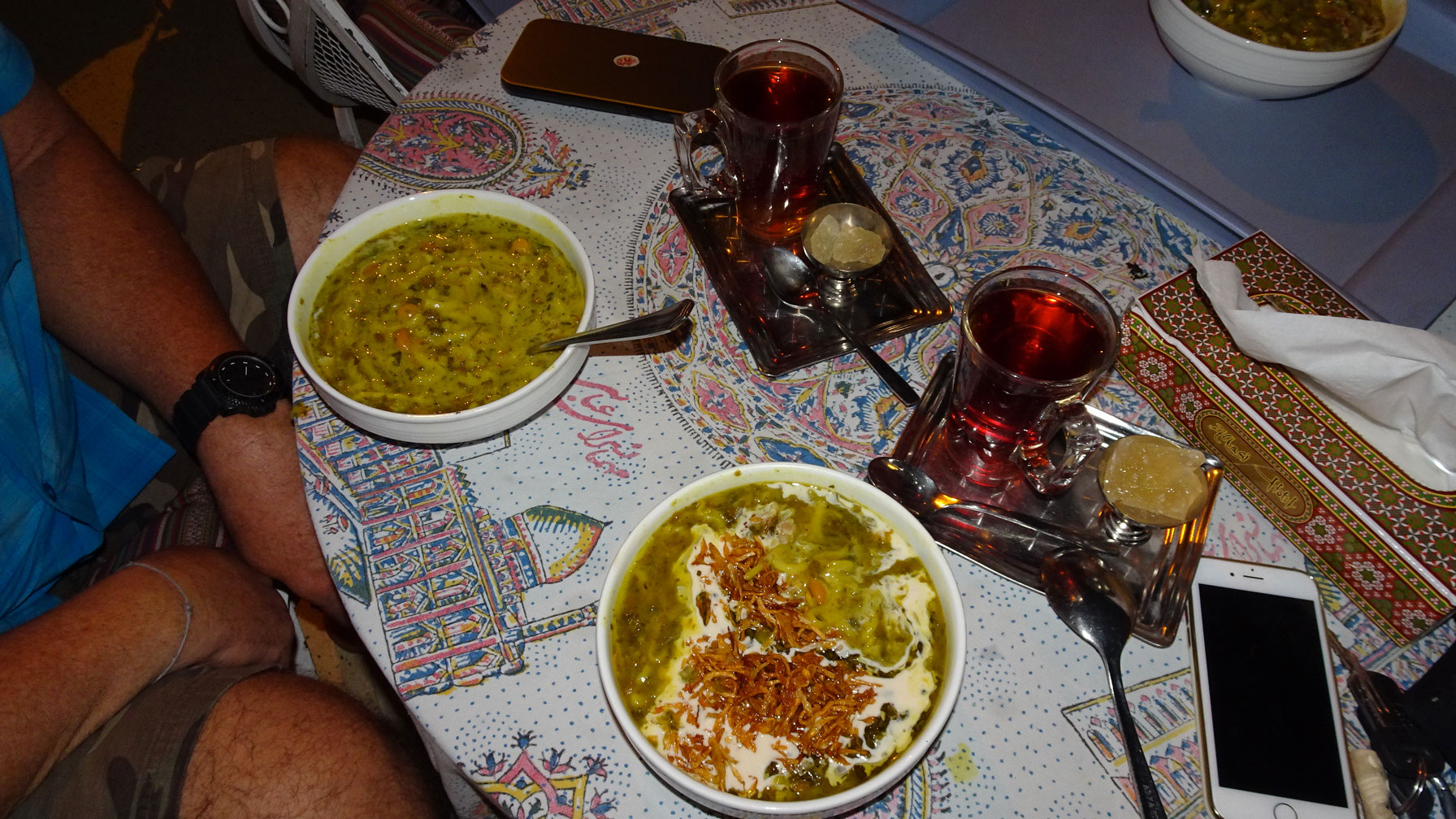 En fin de journée, nous dégustons des donuts chez Hamad, un ami de Lia et Rana avant de nous rendre au Soffeh Mountain Park pour une vue nocturne et panoramique sur Ispahan. Merci à nos guides d’un jour pour la sympathique journée passée en leur compagnie !