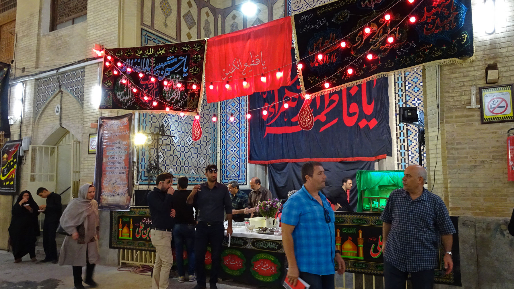Petite parenthèse religieuse nécessaire en ce temps de Muharram. Il s’agit du quatrième mois sacré du calendrier arabe. Le dixième jour de Muharram est connu sous le nom de Ashura, qui commémore la bataille de Karbala en Irak et le massacre de l’Imam Hussain, tué et décapité après avoir subi la soif et l'oppression pendant plusieurs jours. Il est un des douze imams considérés par les Chiites comme successeurs spirituels et politiques du prophète Mahomet. Muharram est sûrement la fête religieuse la plus importante aux yeux des Chiites. Sa manifestation se fait dans toutes les villes et dans tous les villages, notamment pendant les dix premiers jours du mois et ce, sous plusieurs formes : vêtements noirs, processions, chants, tambours, banderoles et drapeaux noirs dans les rues, mosquées et bazars évoquant le martyr de l’Imam Hussain, ainsi que thé et repas distribués gratuitement après les cérémonies, notamment aux gens les plus pauvres. Il est impossible de s’y soustraire et, nous l’avouons, c’est même une expérience plutôt enrichissante. Ceci étant dit, vous trouverez plusieurs marques de cette manifestation dans nos photos.