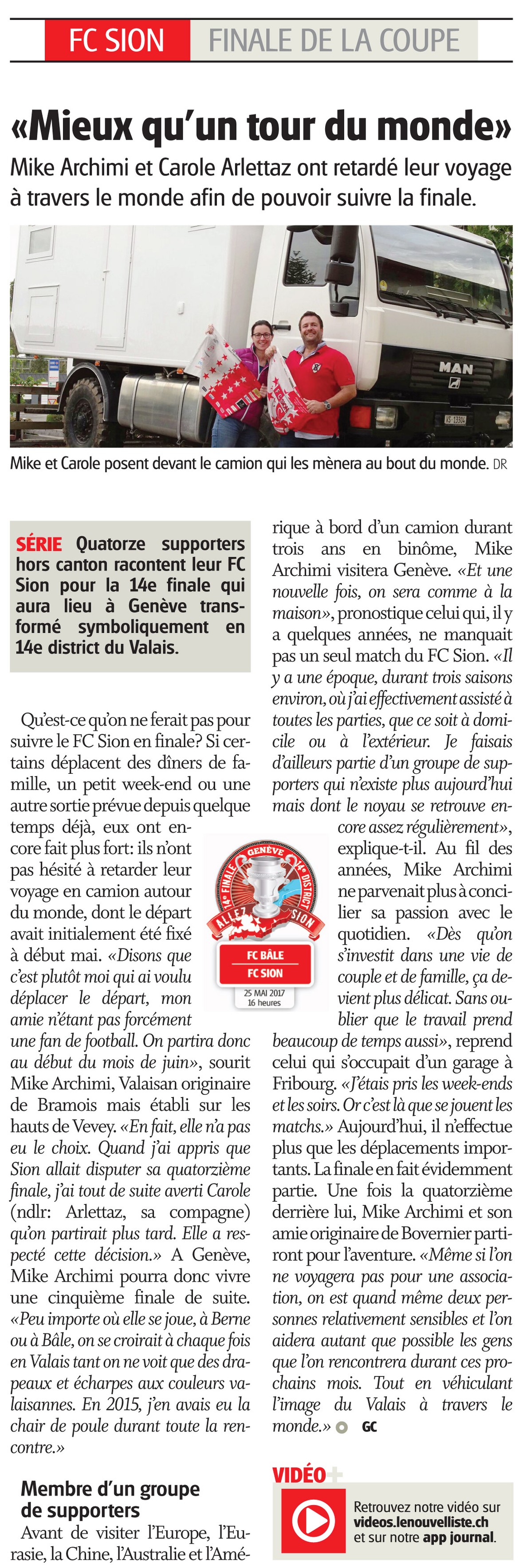 On parle de nous ! Mieux qu'un tour du monde Carole & Mike 12 mai 2017 Médias Extrait du NOUVELLISTE du vendredi 12 mai 2017