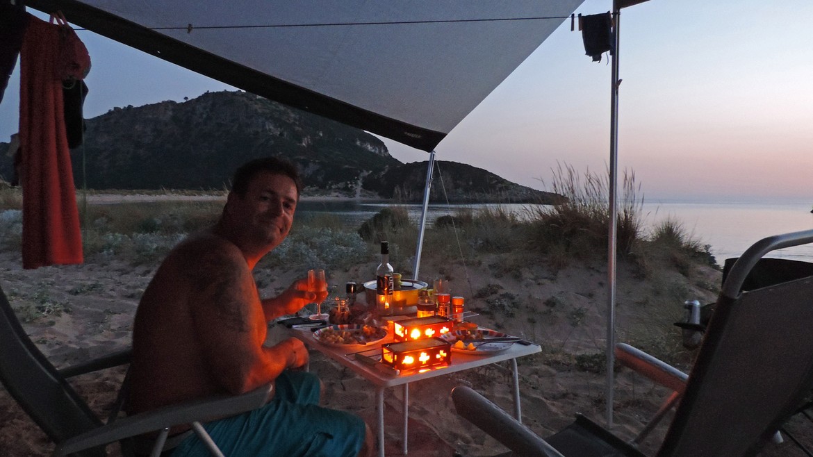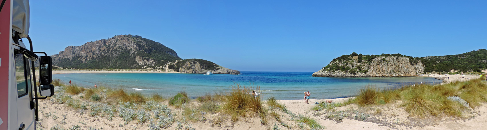 Samedi nous rejoignons le frère de Mike et sa famille pour quelques jours de vacances. Dans cette attente, nous profitons encore d’une plage de sable intéressante en Messenie, dans une baie en forme de champignon ou de lettre omega Ω pour faire directement référence à la Grèce: Voidokilia Beach.