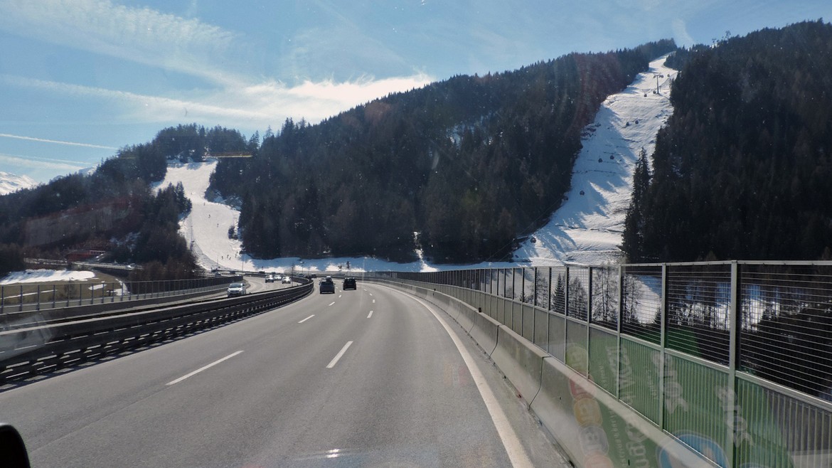 Le trajet jusqu’à Innsbruck se fait sans encombre, bien que je sois malade et que l’enchaînement des routes sinueuses et des nids de poule me remuent méchamment l’estomac. Ils me vaudront, comment dire... une petite surprise en cours de route… que Mike aurait d’ailleurs volontiers immortaliser comme souvenir de départ : la maladie du bonheur
