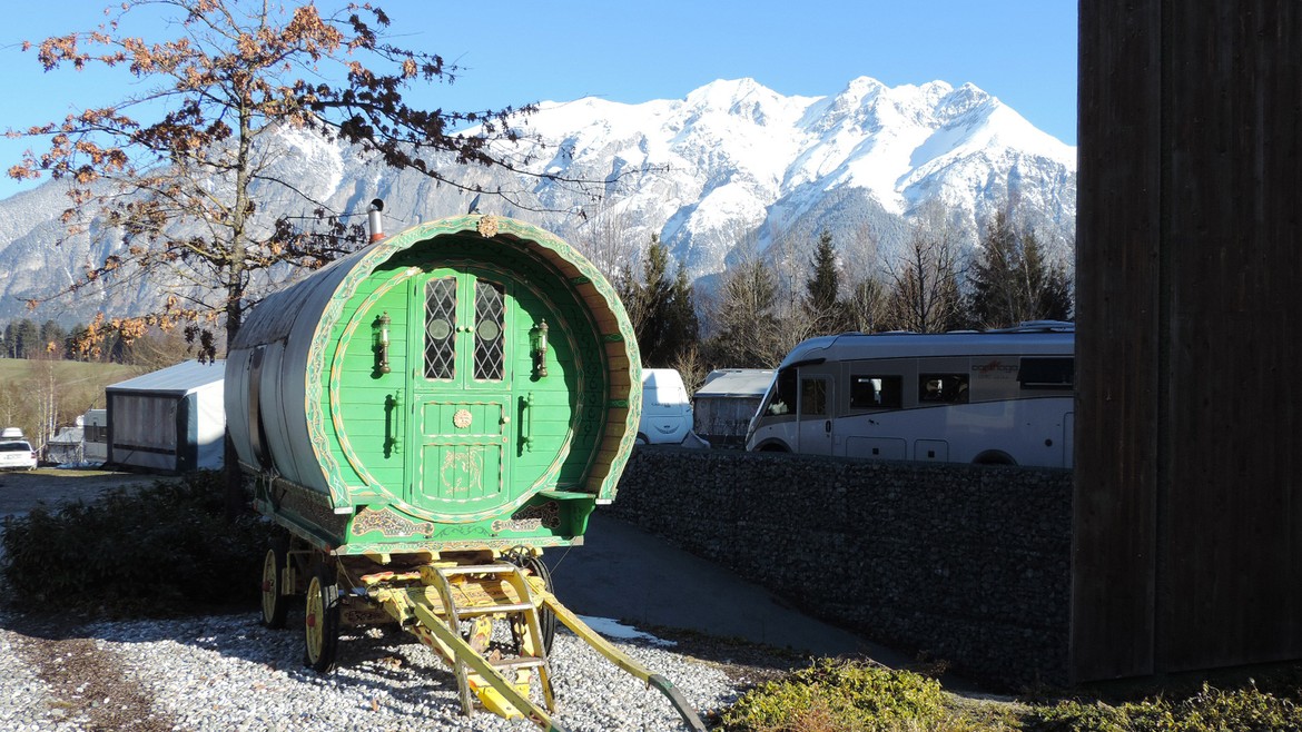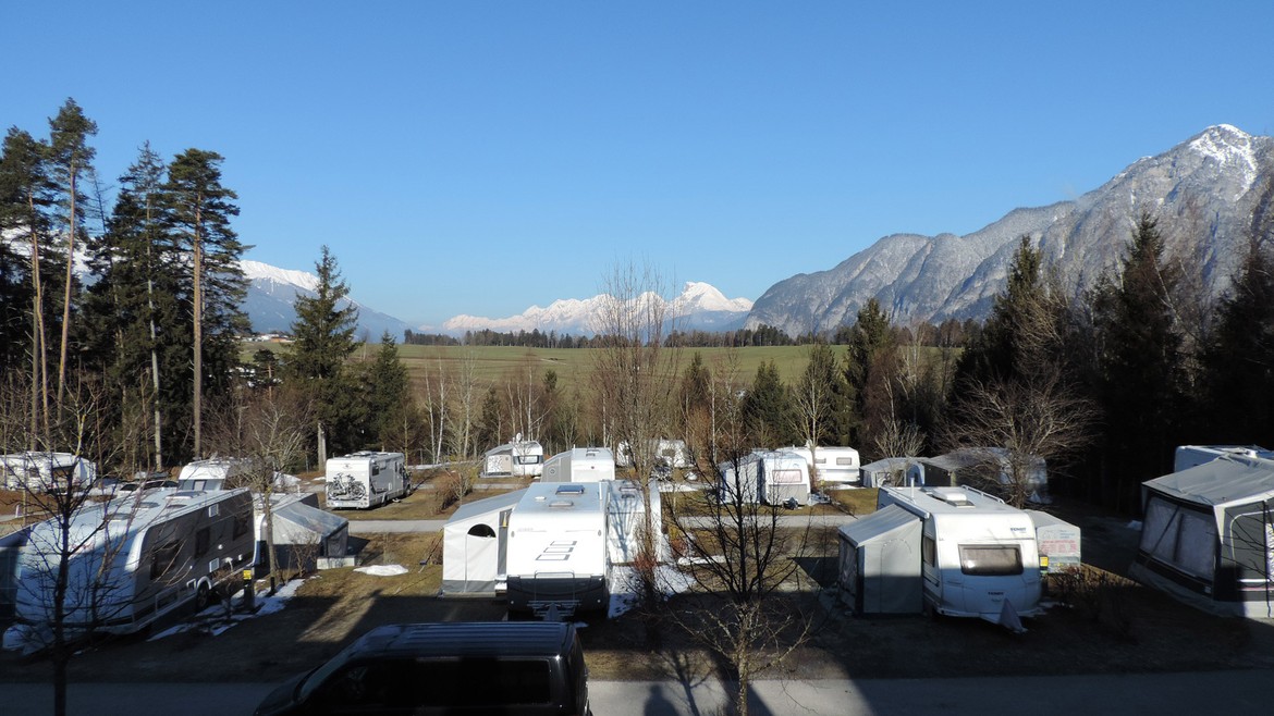Pour notre première nuit hors du territoire suisse, nous décidons de nous arrêter dans un camping, histoire de prendre gentiment nos marques et de commencer notre voyage en douceur. Nous optons pour le camping Ferienparadies Natterer See près d’Innsbruck, un magnifique havre de paix au pied des montagnes.