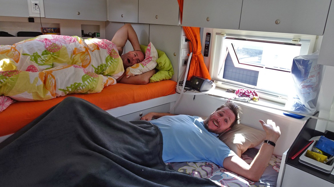 Notre séjour au bord du lac a été ponctué de visites. Nous avons eu le plaisir d'accueillir nos premiers invités pour la nuit. C’est Liv qui a ouvert les festivités : « Carole et moi on dort en haut et tonton, tu dors en bas ! ». Qui eut cru qu’un si petit bout de chose puisse prendre plus de place que Mike dans notre lit . Et puis c'est dans la joie et la bonne humeur que toute la famille nous a rejoint, testant ainsi la capacité "dortoir" de notre habitacle. Quelques amis du bout du monde ont eu aussi pris la pose. Nous avons même reçu la visite inopinée d'une voisine curieuse...