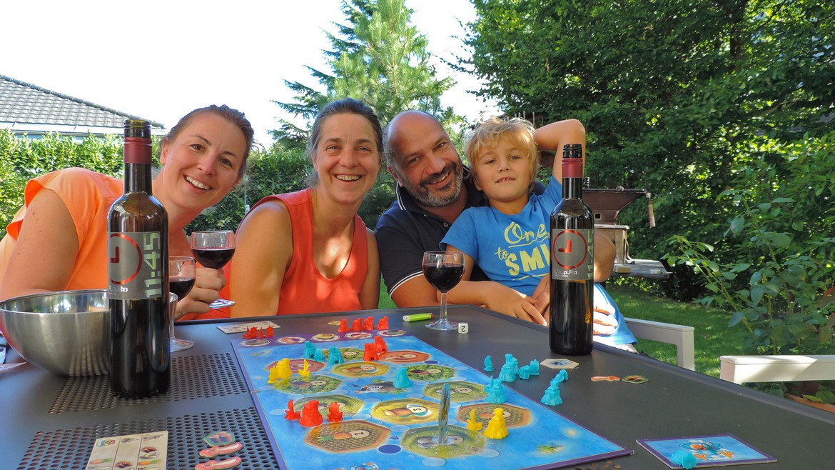 Ce sont Alex, Bigui et Edouard qui ont eu le plaisir de nous accueillir à notre retour. Nous avons passé une fin de mois d’août et un début de mois de septembre agréables en leur compagnie en attendant la livraison de notre matériel, le temps pour nous d’entamer notre « cave » à vin, généreusement fournie par vos précieux cadeaux lors de notre fête de départ, et de profiter comme il se doit des belles soirées d'été ! Ici un petit A.p.RO en pensée avec maman et Philippe, à votre santé !