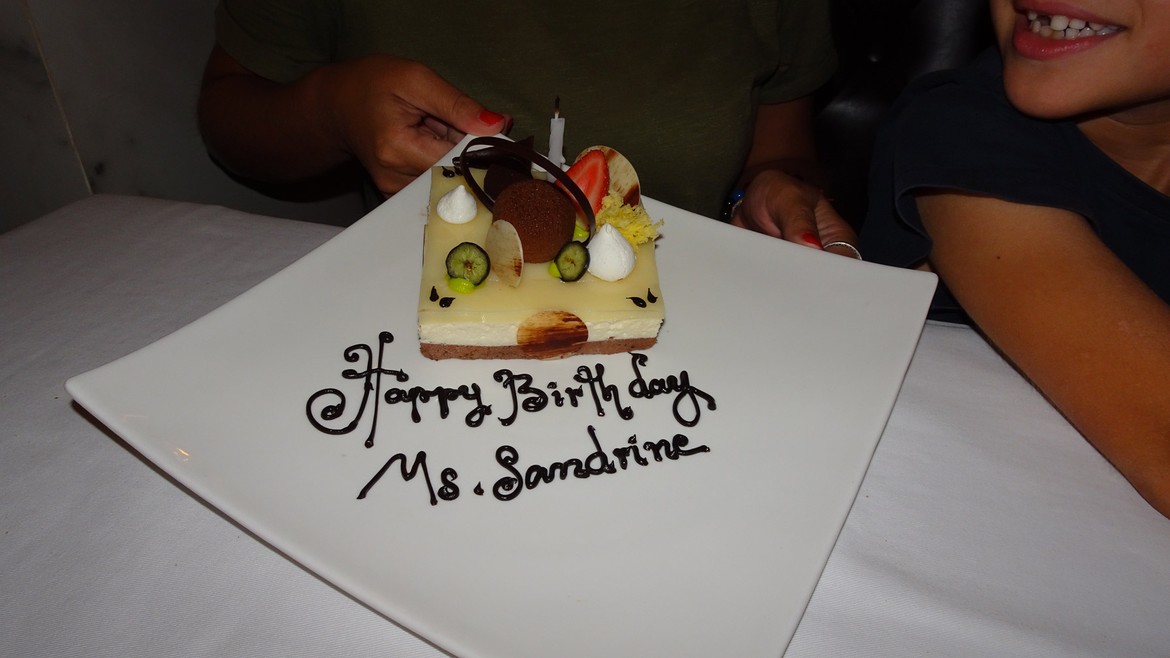 La journée se termine au restaurant avec un magnifique et succulent repas : viande tendre, pâtes al dente, salade fraîcheur, autant de produits pas très locaux mais oh combien appréciés en ce jour si spécial, sans oublier…  le GATEAU !!