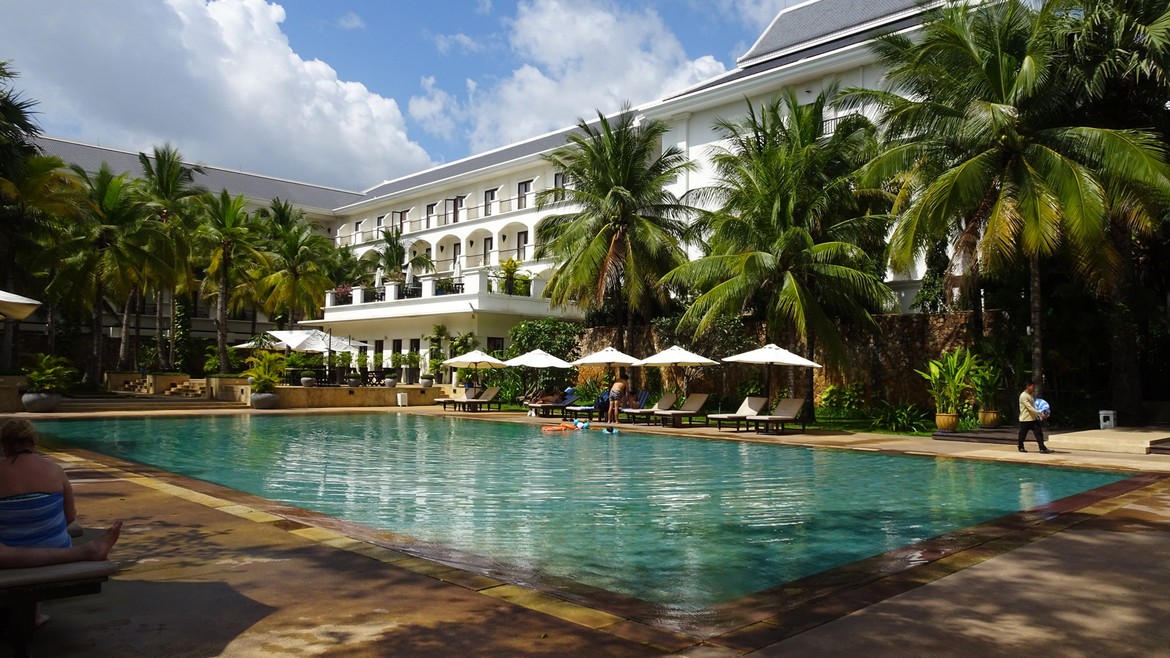 Si elle a découvert le pot aux roses, elle le cache en tout cas bien à notre arrivée au  White Lotus Hotel . Les gardiens, d’abord décontenancés à la vue de nos véhicules, finissent par accepter que nous parquions dans l’enceinte de l’hôtel. Le cadeau se matérialise enfin, et c’est avec une émotion difficilement dissimulée que notre amie découvre sa surprise : superbe hôtel, chambre décorée avec soin pour l’occasion, grande piscine où nous piquons une tête dès notre arrivée. Le cadre est enchanteur et à la hauteur de ce bel âge, bravo Raphaël !