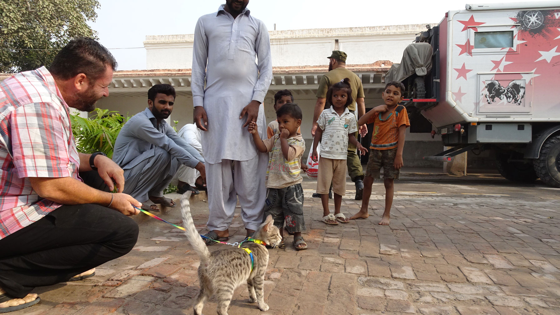 Notre journée s’achève à Multan. Comme à l’accoutumée, une foule se presse autour d’Antares. Contrairement à la veille toutefois, et malgré la fatigue, nous nous plions volontiers au jeu des selfies et des questions. Lahana aussi s’adonne pour la première fois depuis plusieurs jours aux joies de la sortie en plein air sous le regard amusé des petits et des grands.