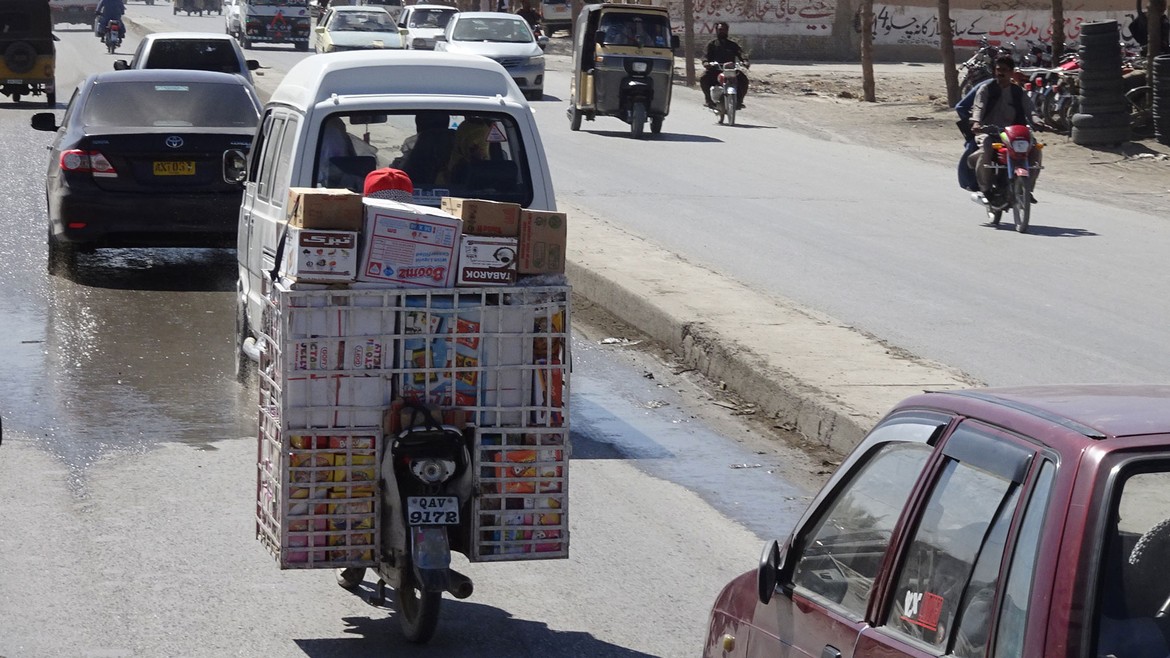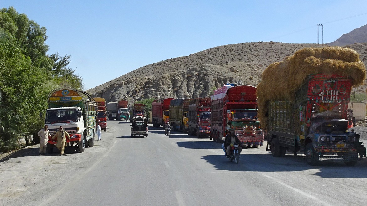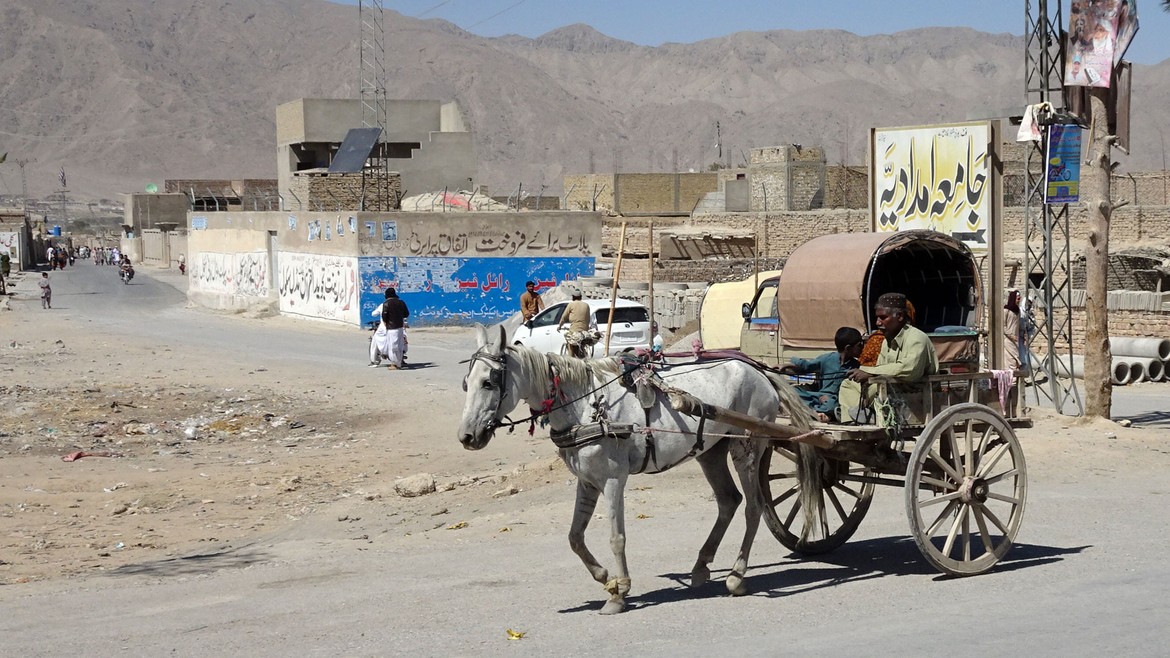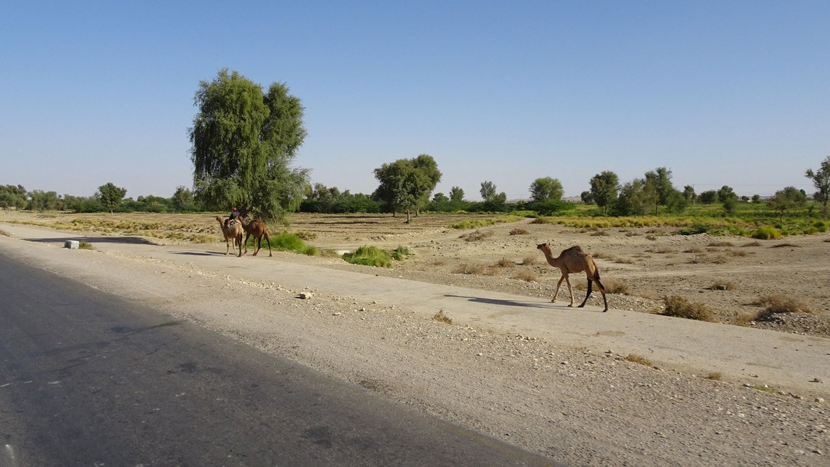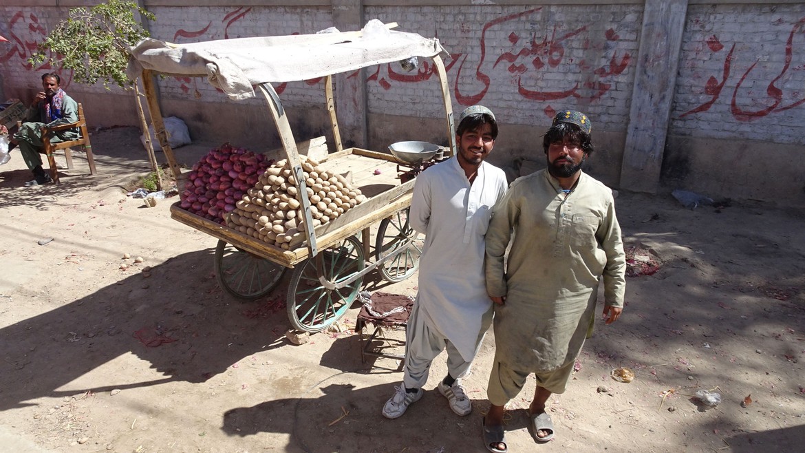 Nous quittons Quetta et son brouhaha frénétique après les selfies d’usage. Dans le pêle-mêle de la rue, nous volons encore quelques clichés ici et là. Il est difficile de rendre compte en images de l’effervescence de la ville tant il y a de choses à voir : les chargements insolites, la diversité des véhicules animés des couleurs du truck-art, les marchands de rue et leurs étals multicolores, les femmes et leurs belles tenues brodées, des animaux en tout genre et finalement la ville qui s’éloigne gentiment avec les montagnes en fond de décor. Quel dépaysement !