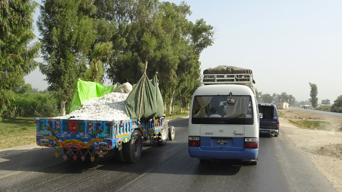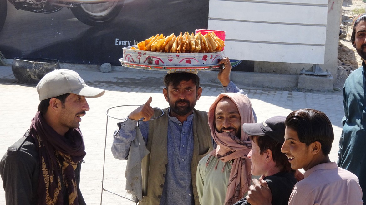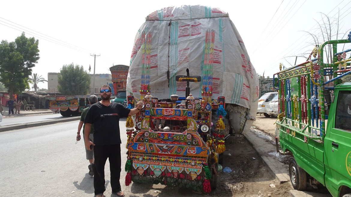Après quelques kilomètres seulement, dans le chaos de la circulation citadine, nous perdons de vue notre escorte qui avance sans se préoccuper du 10 t qui les suit à grand-peine et doit se frayer un chemin dans la densité inorganisée du trafic pakistanais. Mike me demande la route à suivre... ?!? Euh... « Par-là... ? » On repère alors un pick-up qu’on pense être notre escorte et on se met à le suivre. Après quelques minutes, le véhicule s’arrête et les soldats ont l’air franchement perturbés. A la vue du bus remplit de Japonais qui stoppe à son tour à notre hauteur, nous comprenons rapidement qu’il ne s’agit pas de notre escorte. Quelle bonne blague ! Et comme les soldats n’ont aucune information sur les véhicules qu’ils accompagnent, tout le monde se rend à l’évidence... notre escorte est perdue. La situation est plutôt cocasse et rigolote. Nous nous joignons donc au groupe de Japonais. Sans le savoir encore, notre journée va prendre une toute autre tournure que les jours précédents, car qui dit groupe, dit aussi pause pipi, pause miam et pause photos ! Un régal pour nous qui roulons maintenant non-stop depuis près d’une semaine !