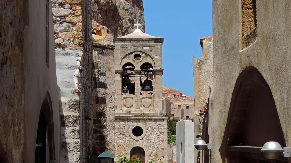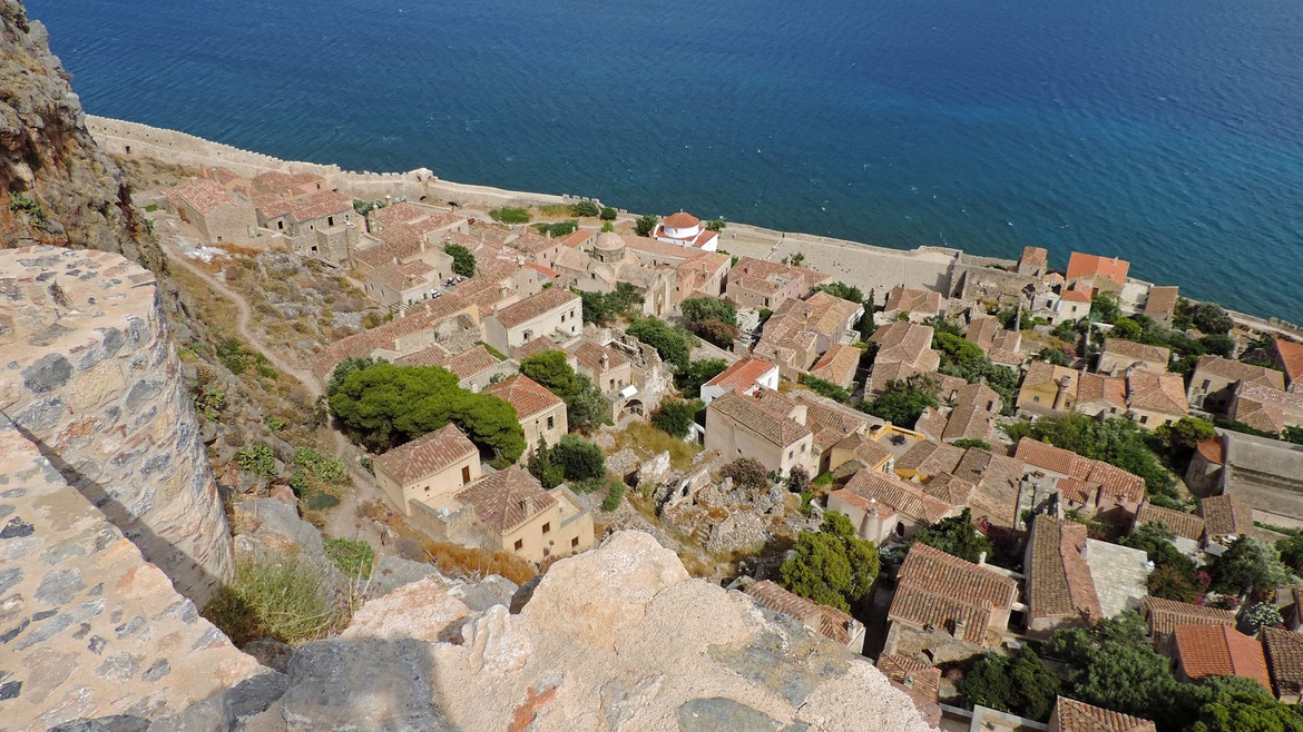 La deuxième visite de la journée nous amène au sud du Péloponnèse, en Laconie, dans la ville fortifiée de Monemvasia.
