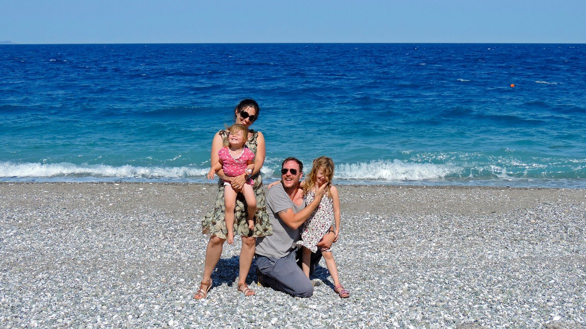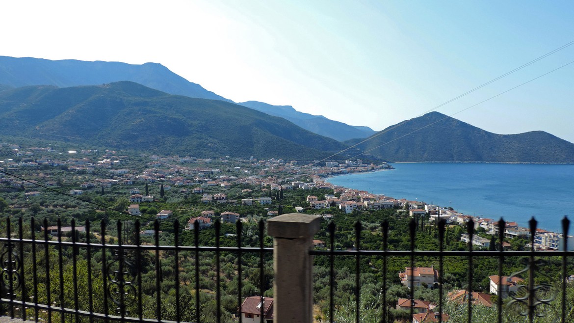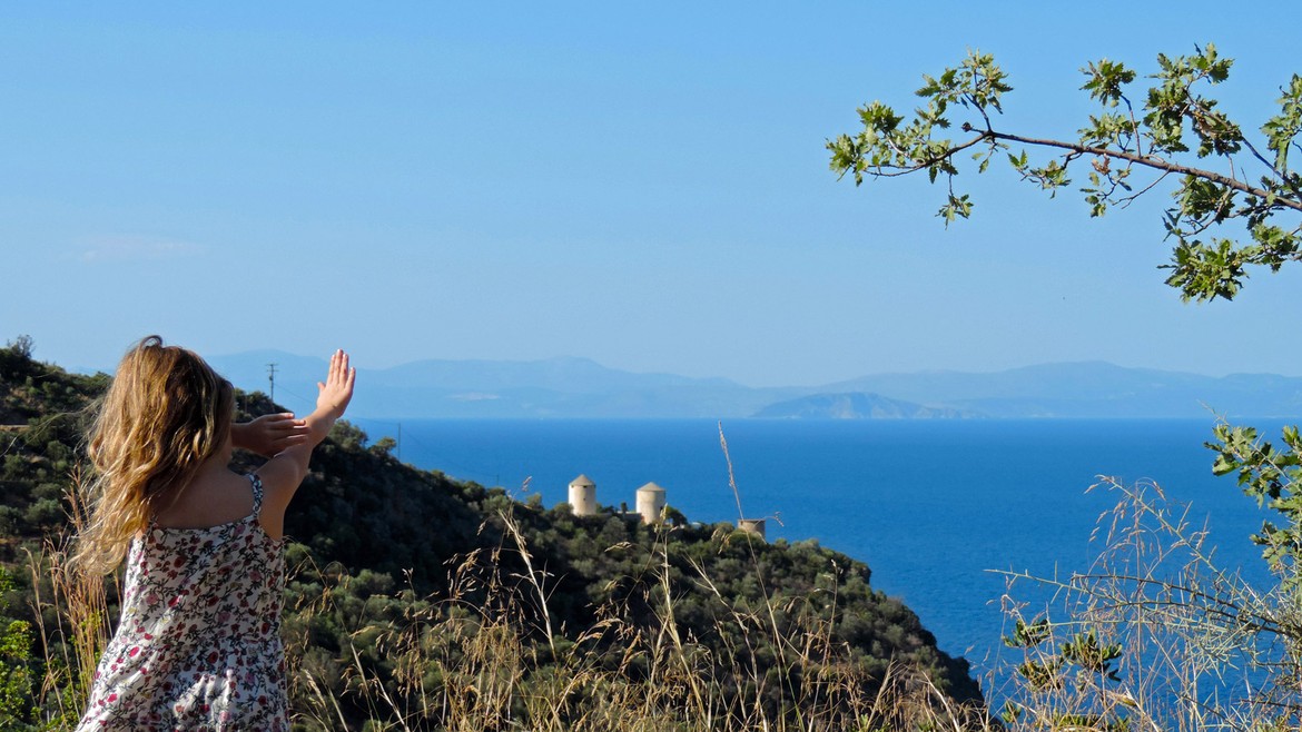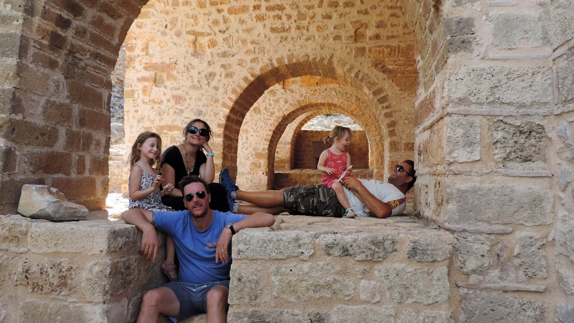 Nous retrouvons Jo, le frère de Mike, Janique, sa femme, et leurs filles à Tiros, un petit village à flan de montagnes, au milieu des oliviers, avec la vue sur la mer Egée. Ce sont les premières visites de notre voyage et nous nous réjouissons à la perspective de partager un moment en compagnie de têtes connues après près de trois mois de voyage.