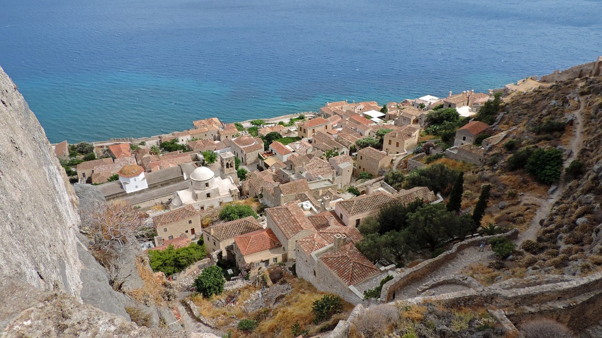 Monemvasia se traduit aussi par Malvoisie. C’est en effet ici qu’est né le cépage du même nom, vin célèbre au Moyen Age qui était largement exporté en Europe. La cité garde d’ailleurs ses airs moyenâgeux et il y est agréable de flâner dans ses ruelles escarpées. Demeure tour à tour des Vénitiens, des Ottomans et des Byzantins, on se laisse séduire par la Haute Ville et son panorama.