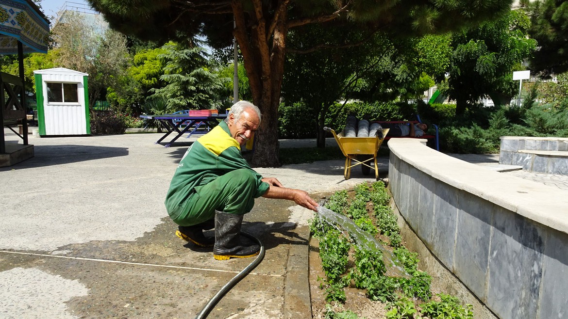 Nous sommes contents de notre emplacement. Aghaghia Park est magnifiquement entretenu, verdoyant et plein de fleurs. Il est gardienné par Hussein qui le chérit mieux que personne. Les gens viennent s’y promener, faire un brin de sport, se détendre ou se rafraîchir auprès de la fontaine.