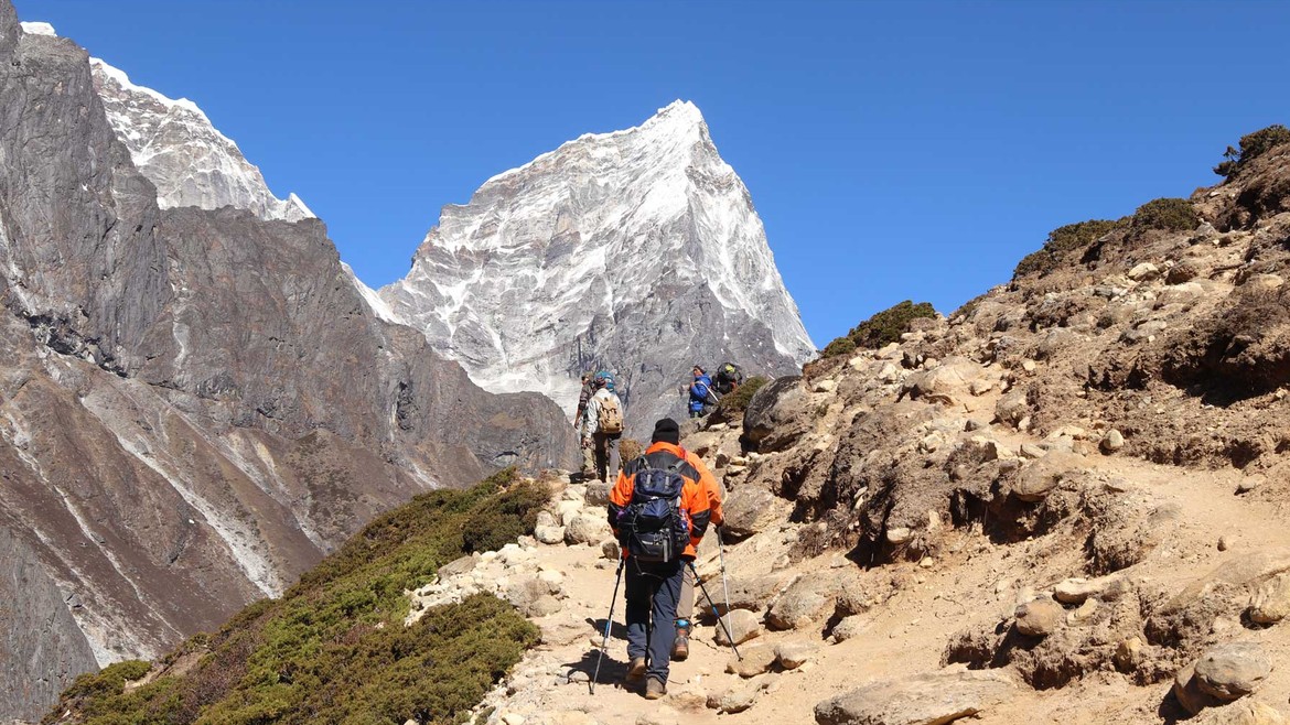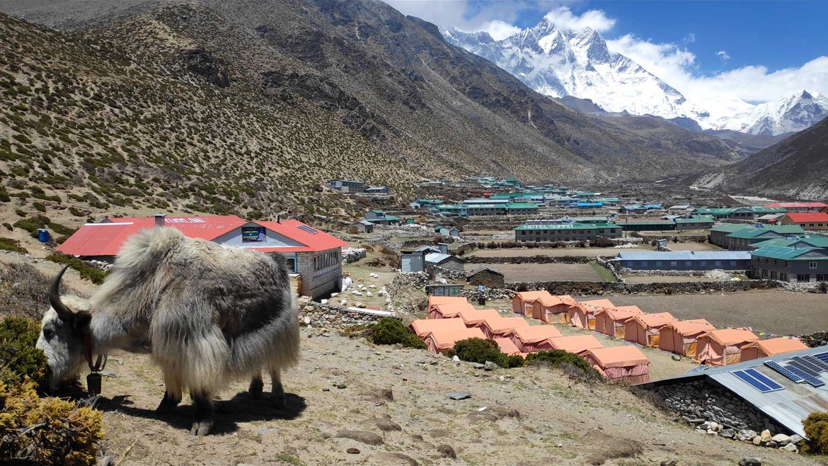 A Dingboche (4'410 m), nous marquons un nouveau jour de pause et d'acclimatation, le temps pour nous de profiter du paysage majestueux qui nous entoure : de hauts sommets enneigés de plus de 6'000 m ravissent nos yeux. La météo est clémente et nous offre le plus beau des spectacles.
