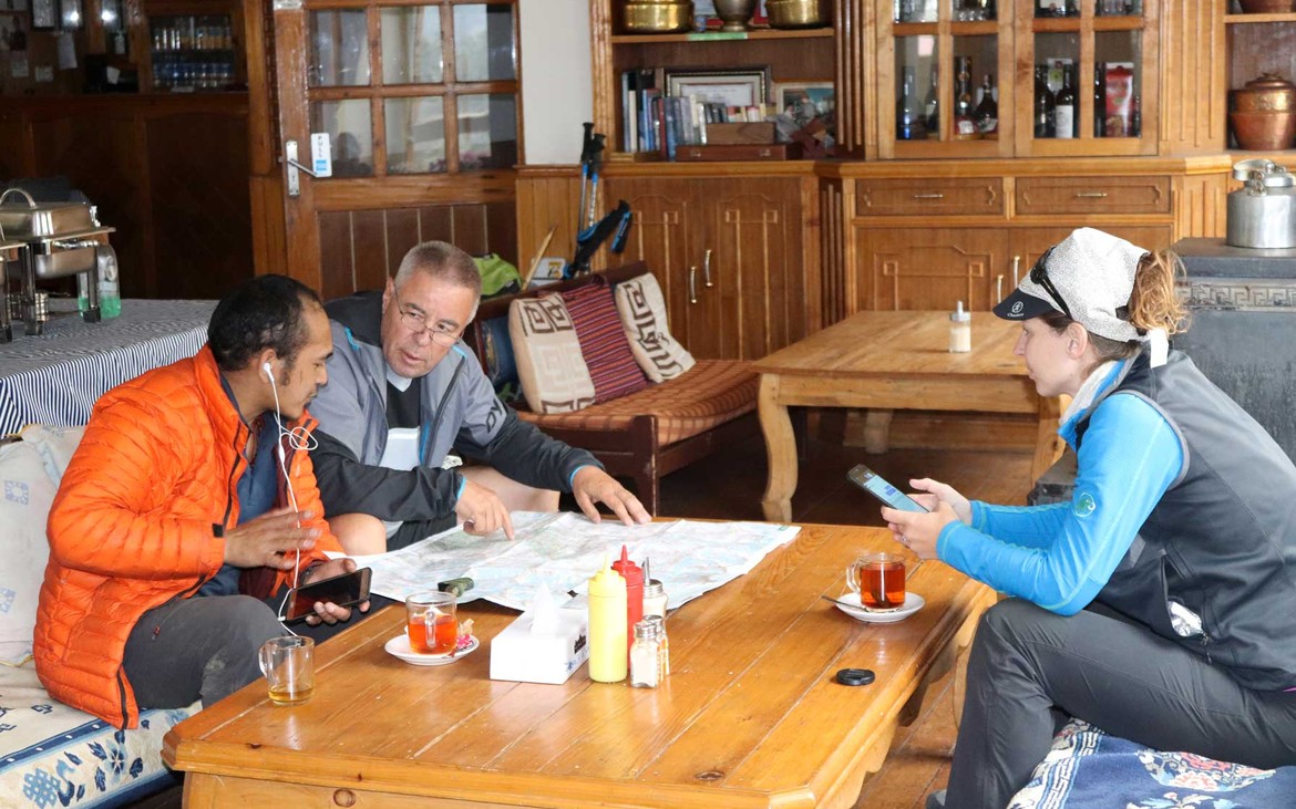 A part une petite toux résiduelle, et un peu de turista, il n'y a pas grand-chose à déclarer. Tout le monde s'acclimate enfin, et plutôt bien. Les nuitées sont de plus en plus fraîches. Les chambres sont peu accueillantes. Elles ne sont bien sûr pas chauffées et donc très froides. Quant à la literie, elle est humide et franchement pas très agréable... Ce n'est vraiment pas très chaleureux. Heureusement, il y a la chaleur de nos sacs de couchage et, pour la première fois depuis notre départ de Nuntala (voir Part I. Everest Base Camp trek ), nous avons droit à un feu de poêle dans la pièce commune et il est fortement apprécié !