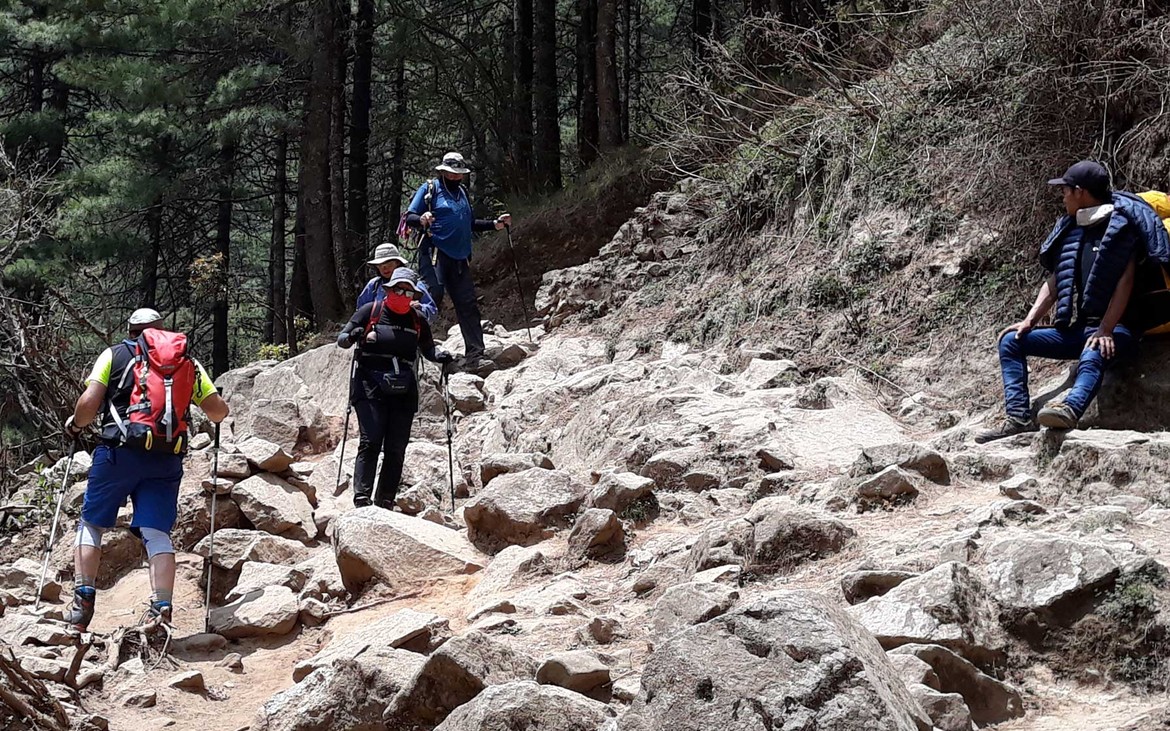Reposés, retapés, et presque guéris, nous reprenons notre marche ce matin. Le ciel est couvert mais les températures sont plutôt agréables. Mike est transformé et méconnaissable, laissant tout le monde sans voix. Il avance d'un bon pas et a même assez de souffle pour lancer quelques blagues le long du chemin. Les hauteurs semblent lui donner des ailes. Les paysages sont magnifiques, et ça fait juste plaisir d'être là. L'altitude commence cependant à se faire sentir, les pas sont plus rapprochés et le souffle plus lourd.