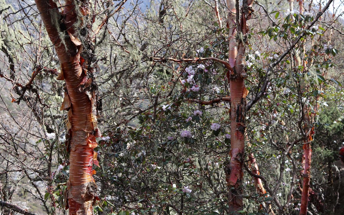 La météo n'est pas très bonne aujourd'hui. Il faut composer avec des nuages, de la brume et du vent. Nous traversons de magnifiques forêts, les dernières... C'est très étonnant pour nous de voir de la végétation de la sorte à près de 4'000 m d'altitude. 4'000 m... Nous les atteignons à notre pause de midi, quelle fierté ! Un nouveau record pour papa et bien sûr pour Mike !