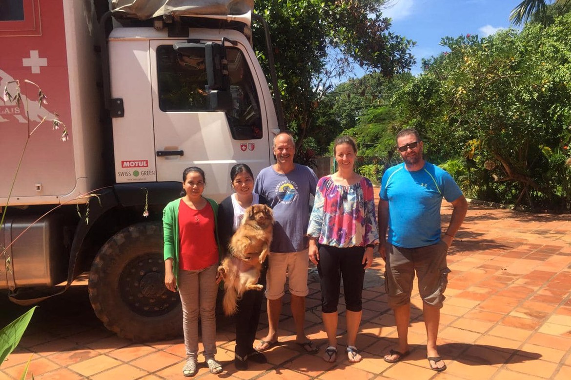 Au revoir Siem Reap. Ce matin c’est à notre tour de faire nos adieux au Bloom Garden Guesthouse (voir Siem Reap... Chapitre II ). Azam et Samir profiteront encore pour nous de la beauté et de la convivialité du lieu. Quant à Roland, il est l’heure pour lui d’endosser le rôle d’aventurier. Il prend place à bord d’Antares à côté de Mike. Je vais à l’arrière tenir compagnie à Lahana. En route pour la Thaïlande !