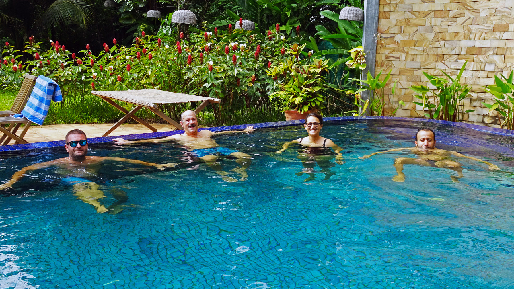 Nous arrivons au Bloom Garden Guesthouse en fin d’après-midi. Ici, on se réveille à l’écart du trafic, dans un écrin de végétation tropicale et au chant des oiseaux. La propriété offre plusieurs commodités, dont un espace lounge extérieur et une piscine. Nous sommes heureux d’accueillir nos amis suisses dans ce cadre reposant et enchanteur…