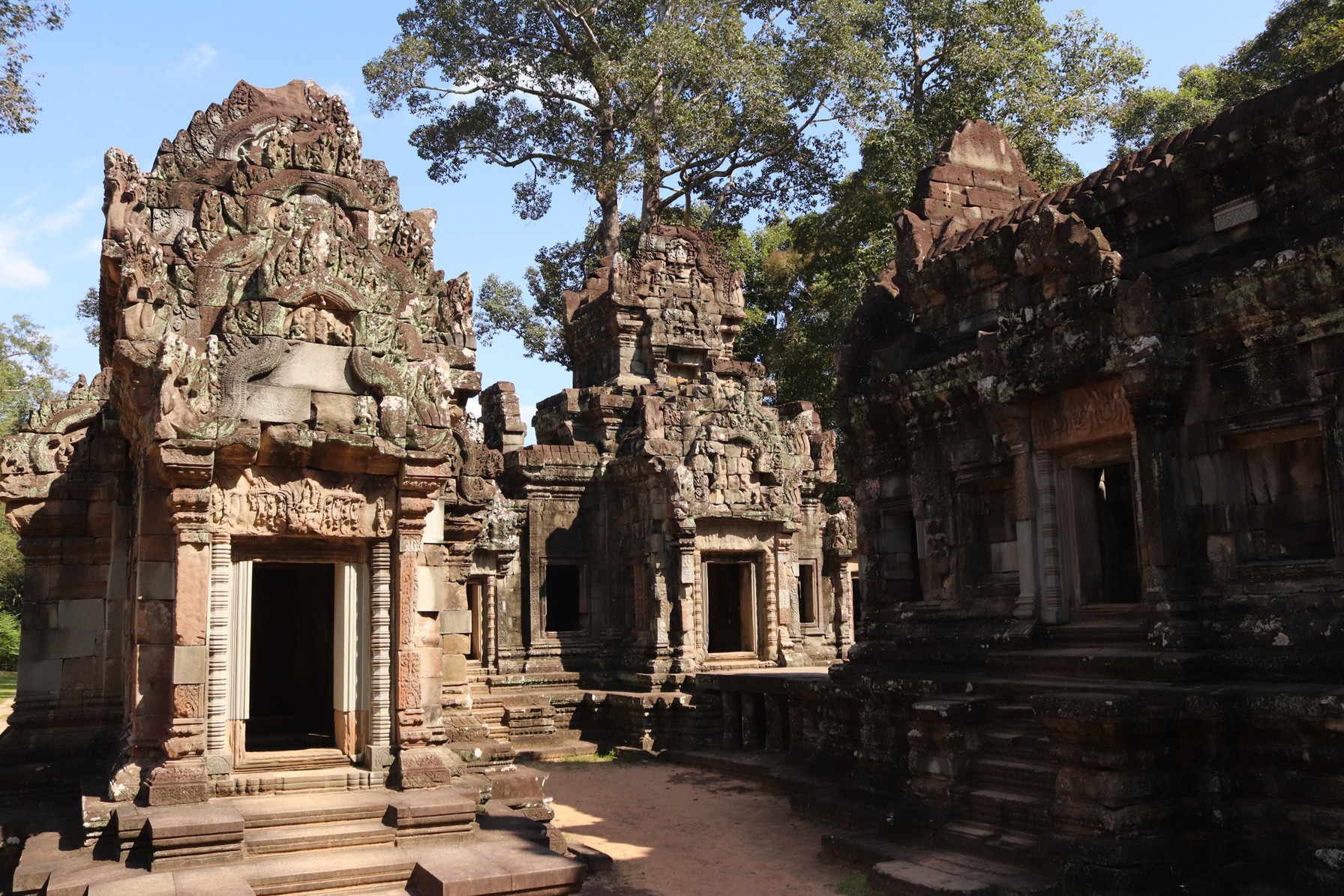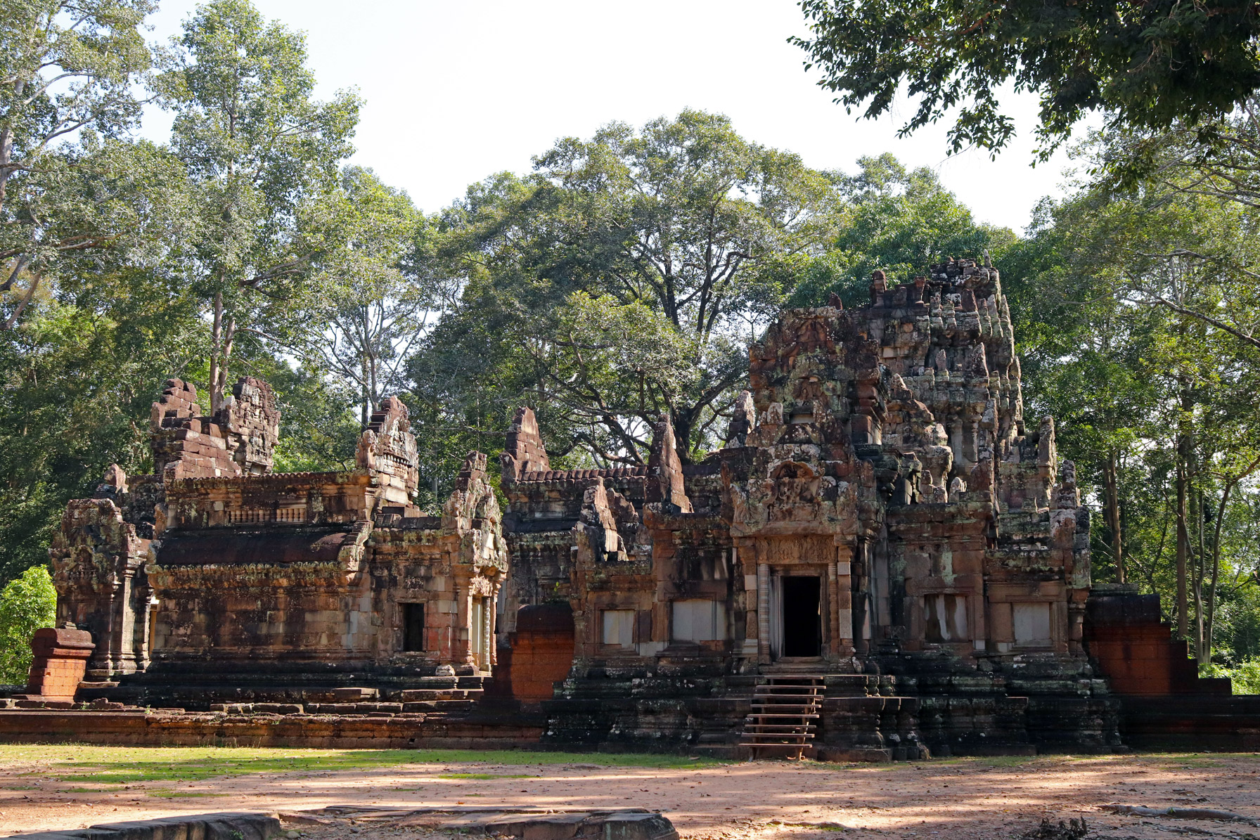 et Ta Keo, un temple dont la construction fut avortée lors du changement de règne en 1010 entre Jayaviravarman et Suryavarman I, ce qui confère à l’édifice un état d’inachevé.