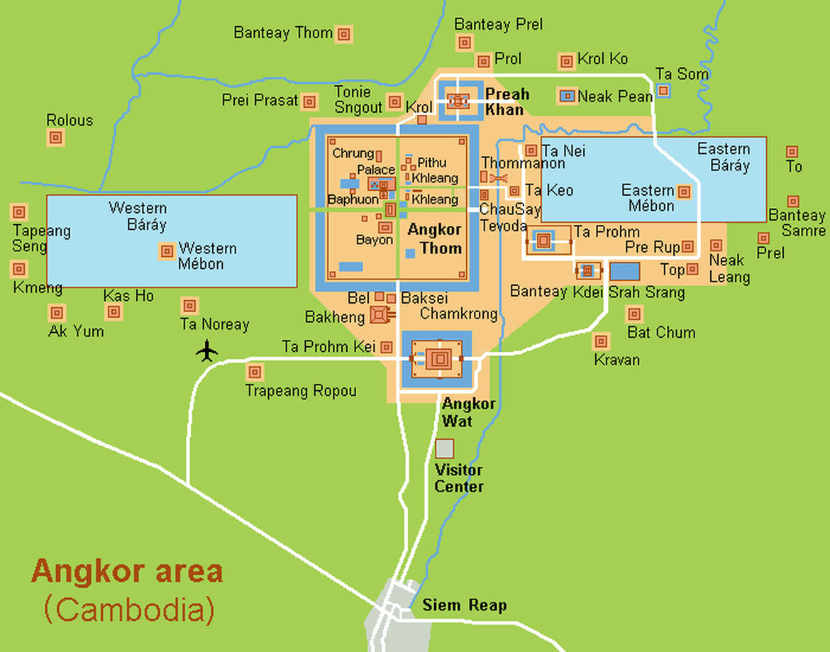 De forme carrée, Angkor Thom réunit plusieurs monuments.