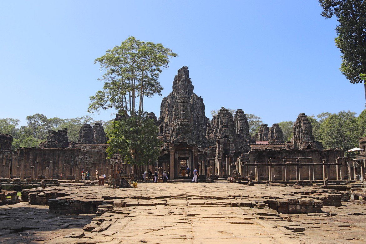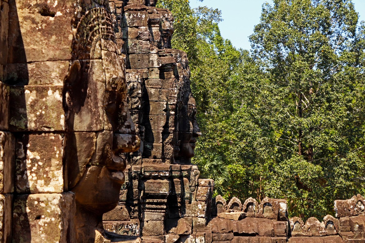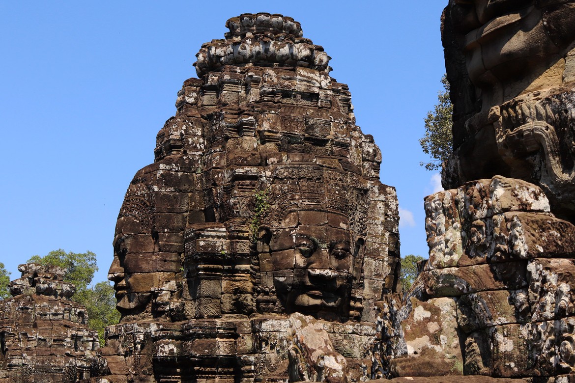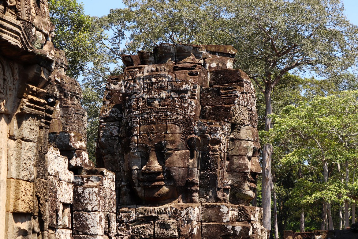 Le premier, le plus incontournable et peut-être aussi le plus beau, est le Bayon, qui se situe à l’intersection des voies perpendiculaires de la ville. C’est le temple aux 216 visages dédié à Bouddha.