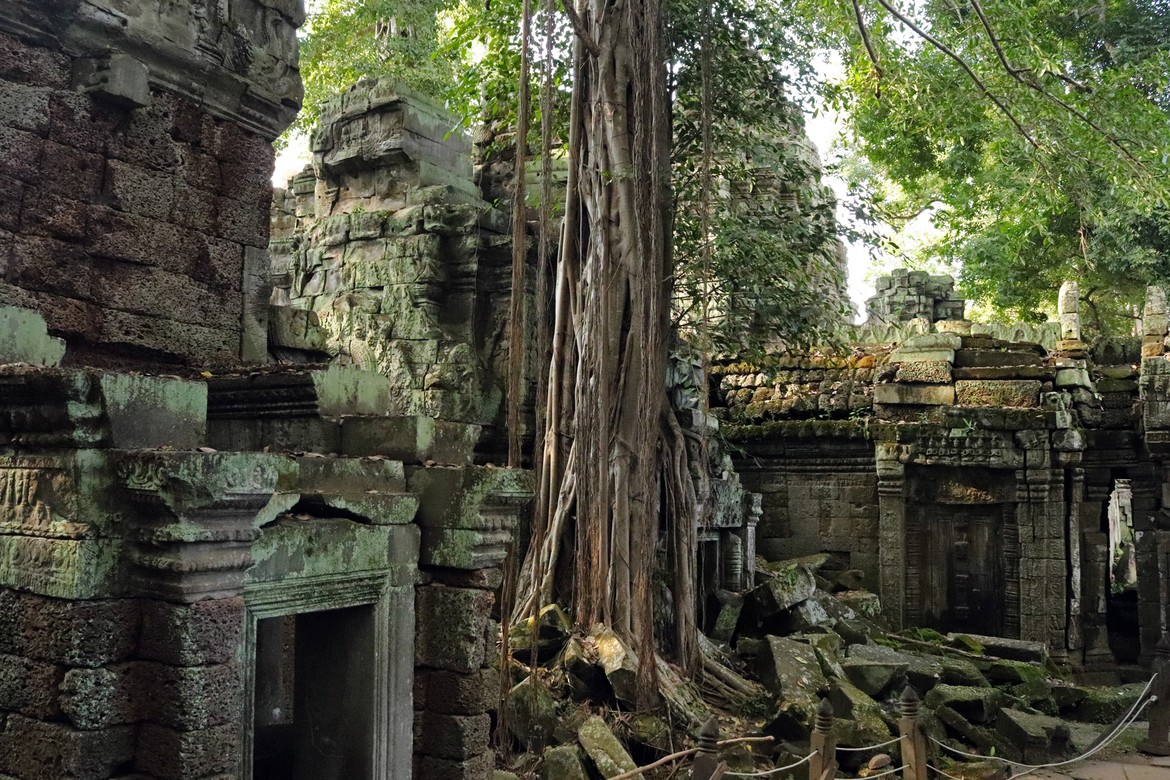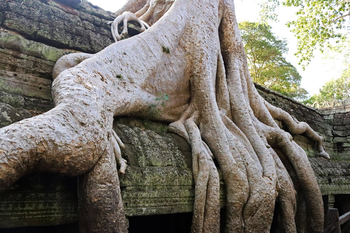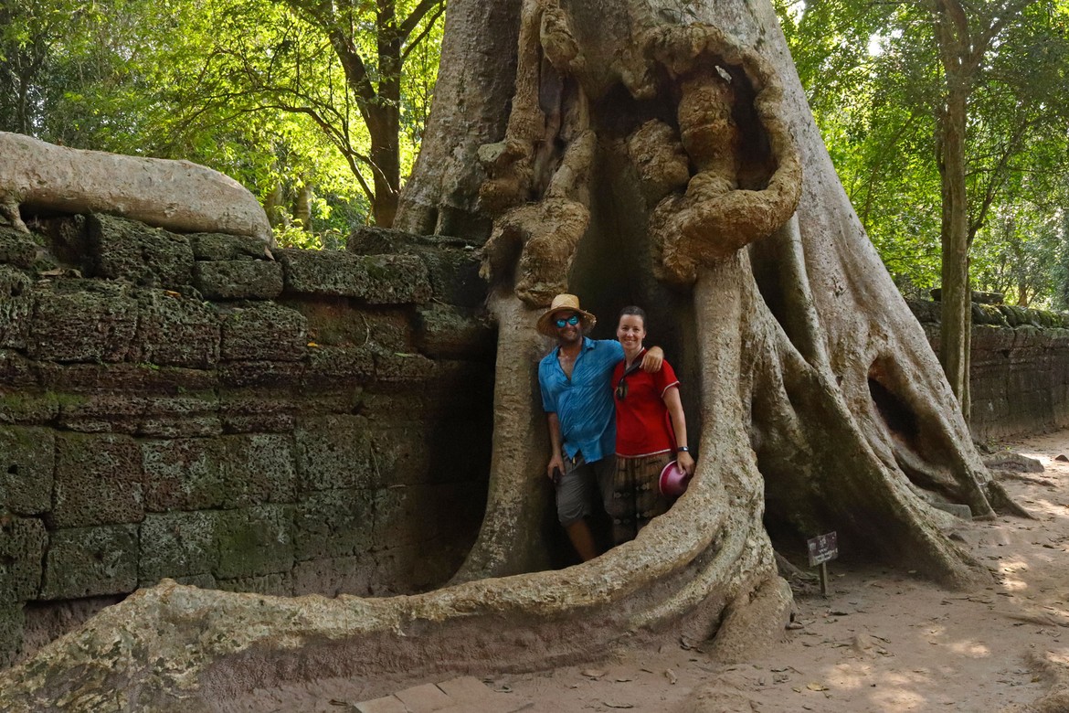 Et voilà arrivés un moment très attendu : Ta Prohm. Anciens monastère et université bouddhique, ils ont volontairement été maintenus dans un état de reconquête du monde végétal : la nature reprend gentiment ses droits sur les édifices qui doivent être constamment stabilisés pour éviter la chute des ruines.