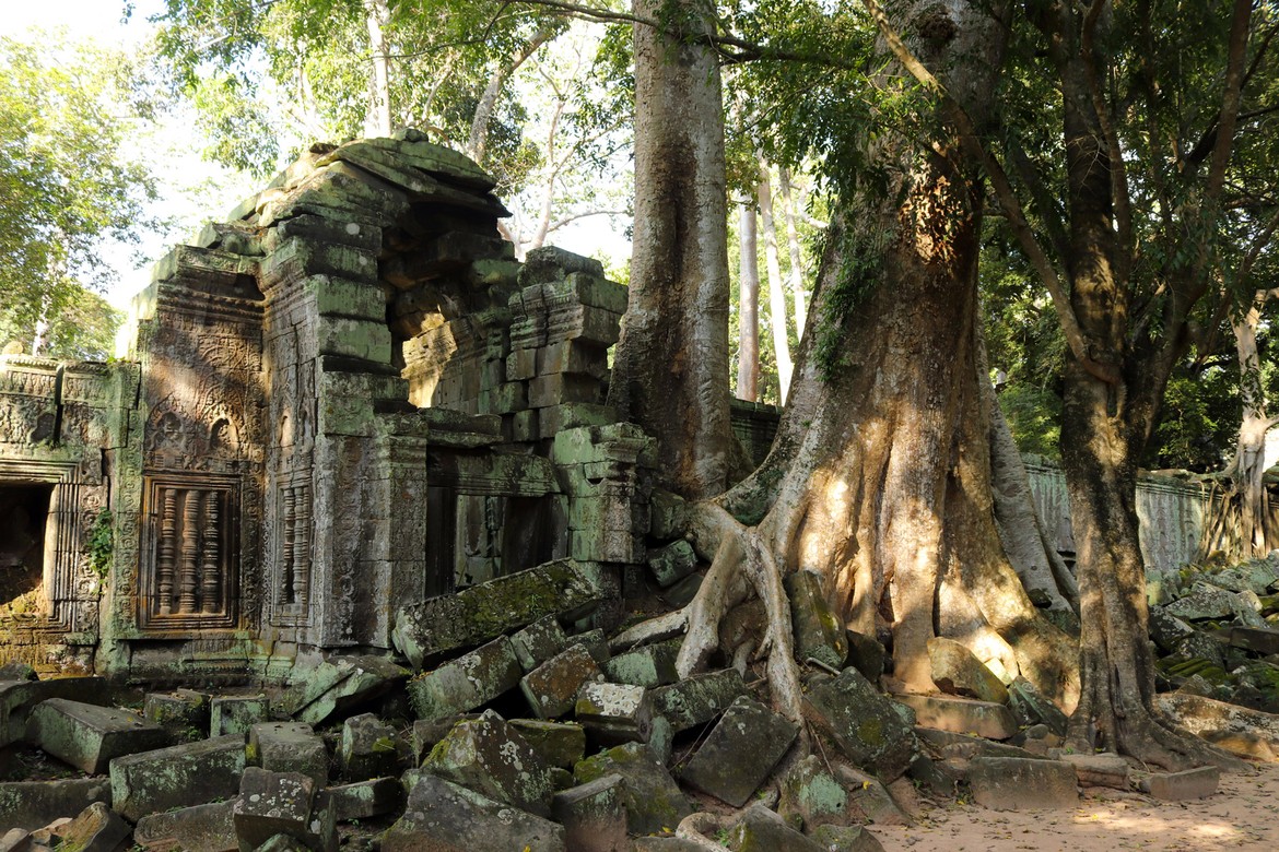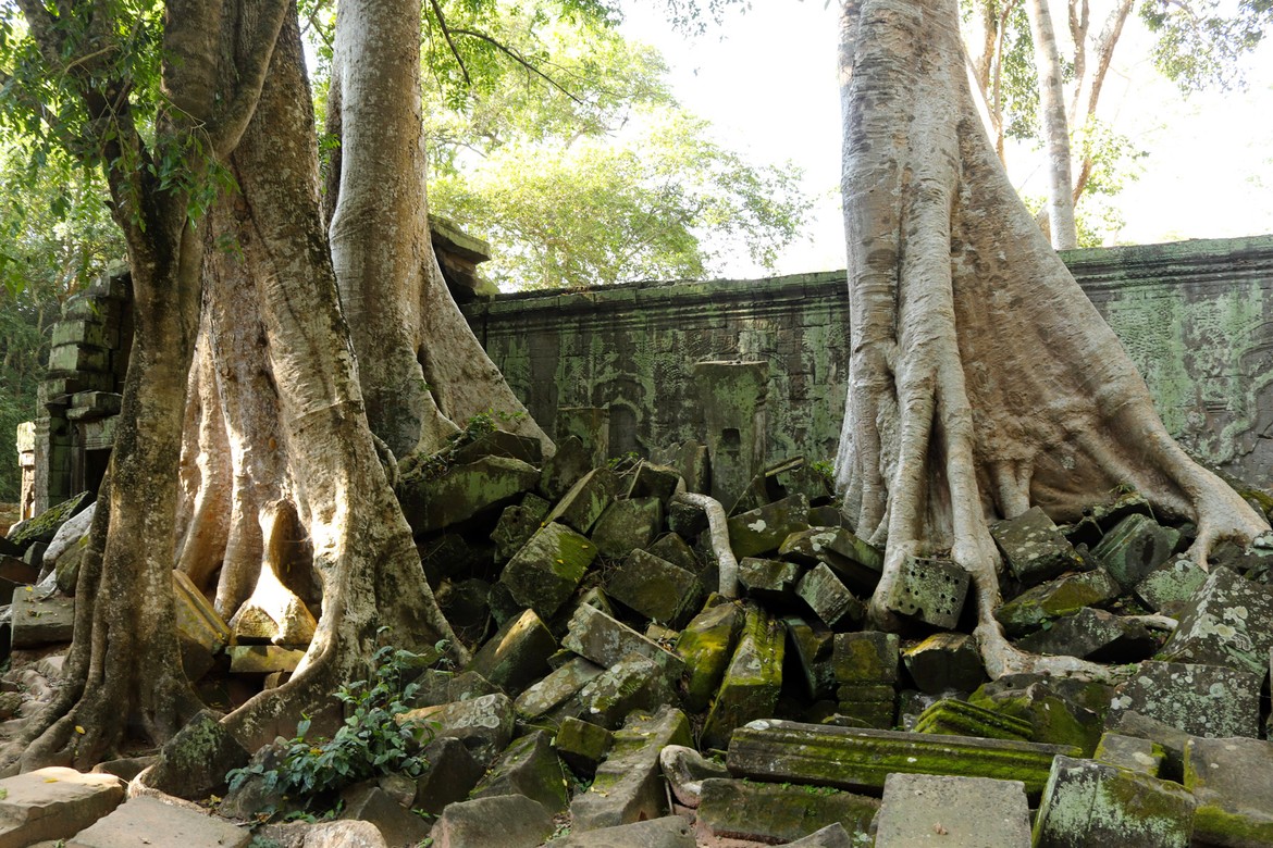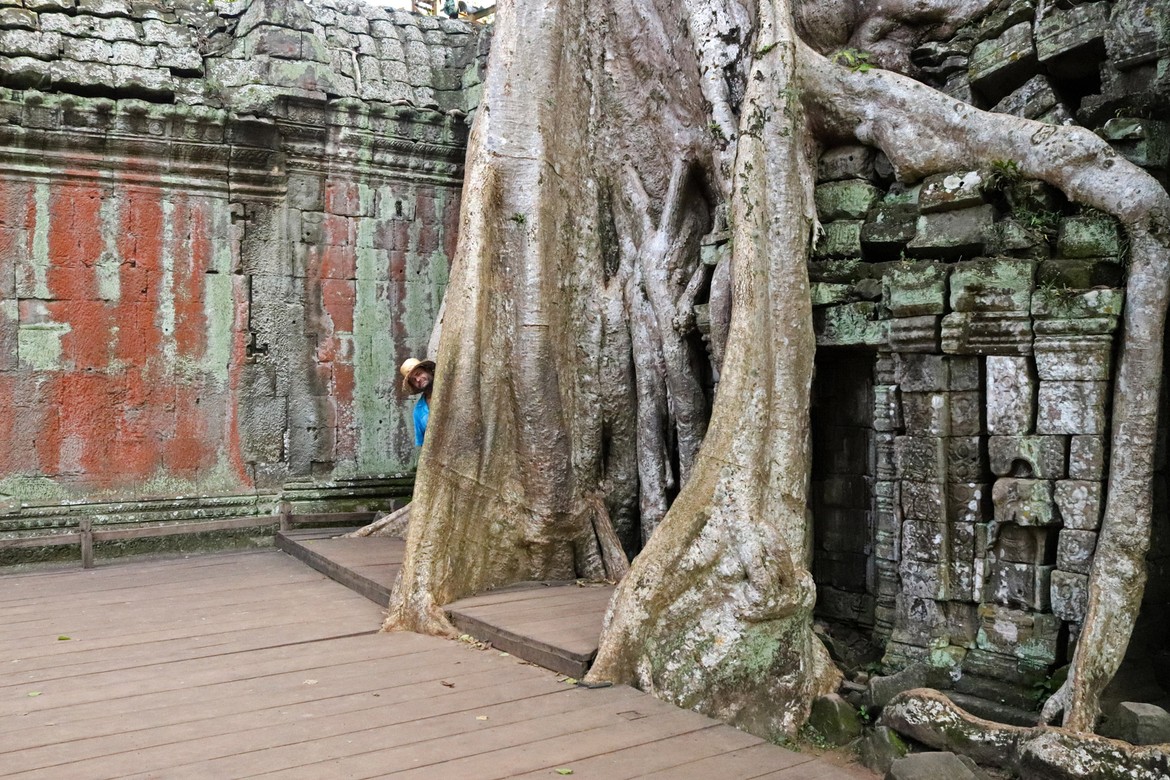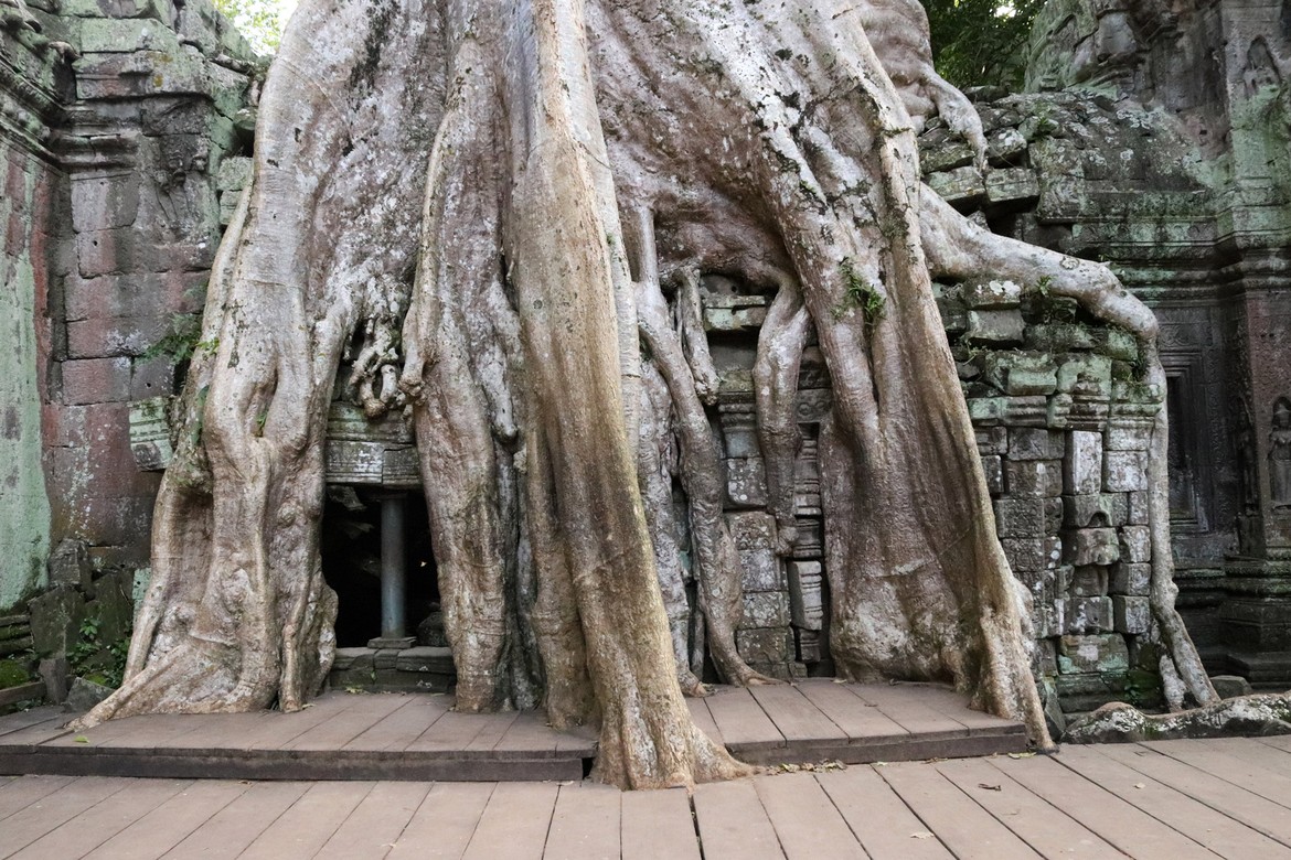 Et voilà arrivés un moment très attendu : Ta Prohm. Anciens monastère et université bouddhique, ils ont volontairement été maintenus dans un état de reconquête du monde végétal : la nature reprend gentiment ses droits sur les édifices qui doivent être constamment stabilisés pour éviter la chute des ruines.