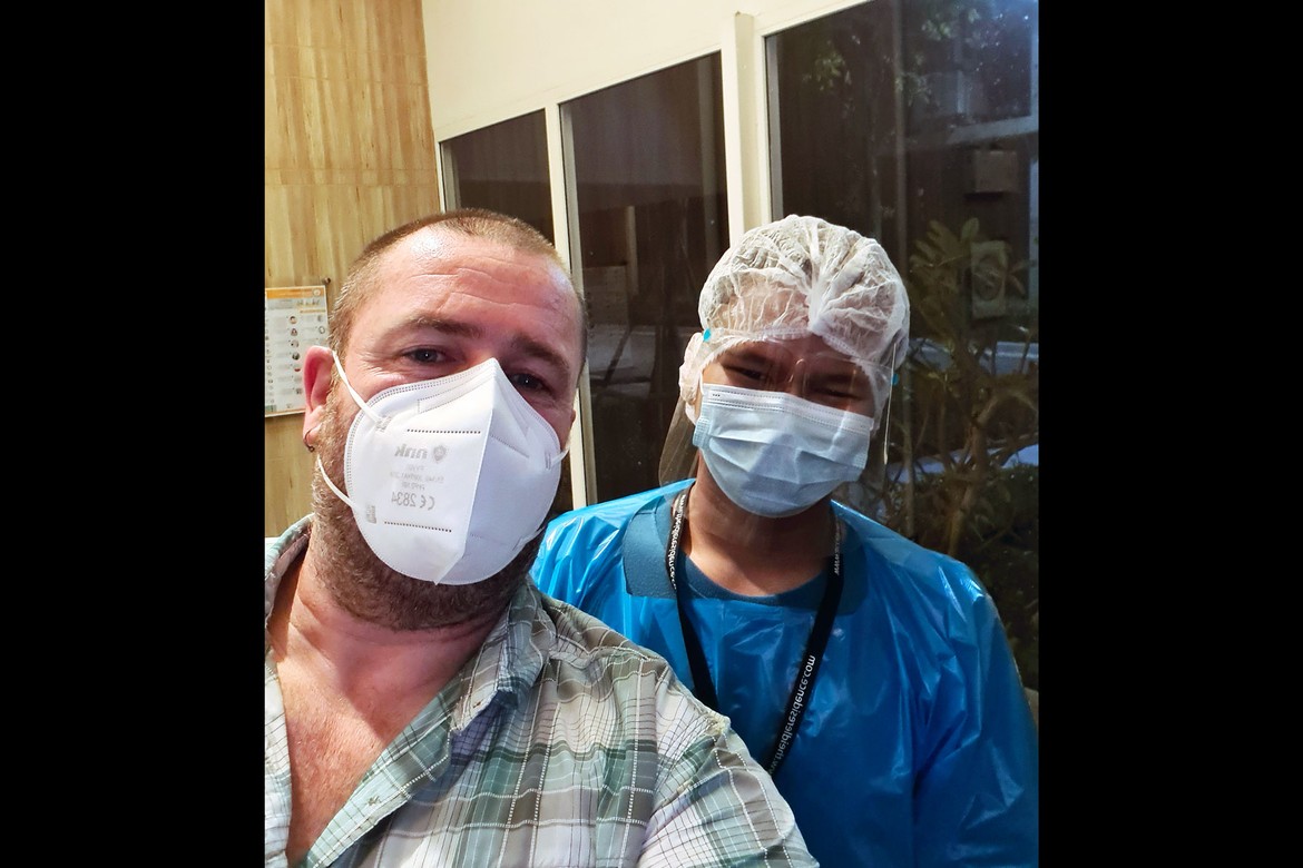 Une nouvelle semaine commence et avec elle une petite délivrance : l’activité récréative ! J’ai le droit à une promenade à l’air libre de 45 mn plusieurs fois par jour, mais attention, dans l’enceinte de l’hôtel ! Haha… l’analogie carcérale se poursuit jusqu’à mes gardiens qui viennent me chercher en chambre et me ramènent après la promenade. Heureusement, je ne suis pas menotté et les sourires sont toujours bien présents derrière les masques