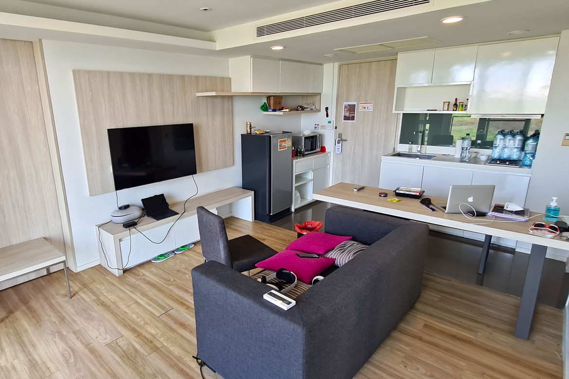 Depuis l’apparition du virus et au fur et à mesure des restrictions, j’ai bien sûr et comme tant d’autres été plus d’une fois en isolement pour suspicion de Covid ou pour retour d’un pays à risque. Mais se retrouver 15 jours consécutifs enfermé dans une chambre sans aucun échappatoire, c’est une situation inédite et difficile à imaginer. Finalement, et par analogie, c’est comme se retrouver dans un établissement pénitentiaire avec totale privation de liberté, à la seule différence que j’ai le choix de la prison et de la cellule. C’est ainsi que j’ai opté pour cet hôtel et sa Junior Suite de 48 m2 avec chambre séparée, salon et kitchenette afin de me mouvoir dans la journée. Un autre critère important était la luminosité des pièces et la possibilité de sortir prendre l’air malgré tout, critères satisfaits ici par la présence d’immenses baies vitrées et d’un balcon. 55'000 THB (environ CHF 1'600.-) pour 15 nuitées avec pension complète, transfert depuis l’aéroport, abonnement Netflix et tests Covid inclus, ce n’est pas donné pour le pays mais ça reste raisonnable pour ne pas finir défenestrer avant la fin de la quinzaine, pris d’hystérie et de claustrophobie.